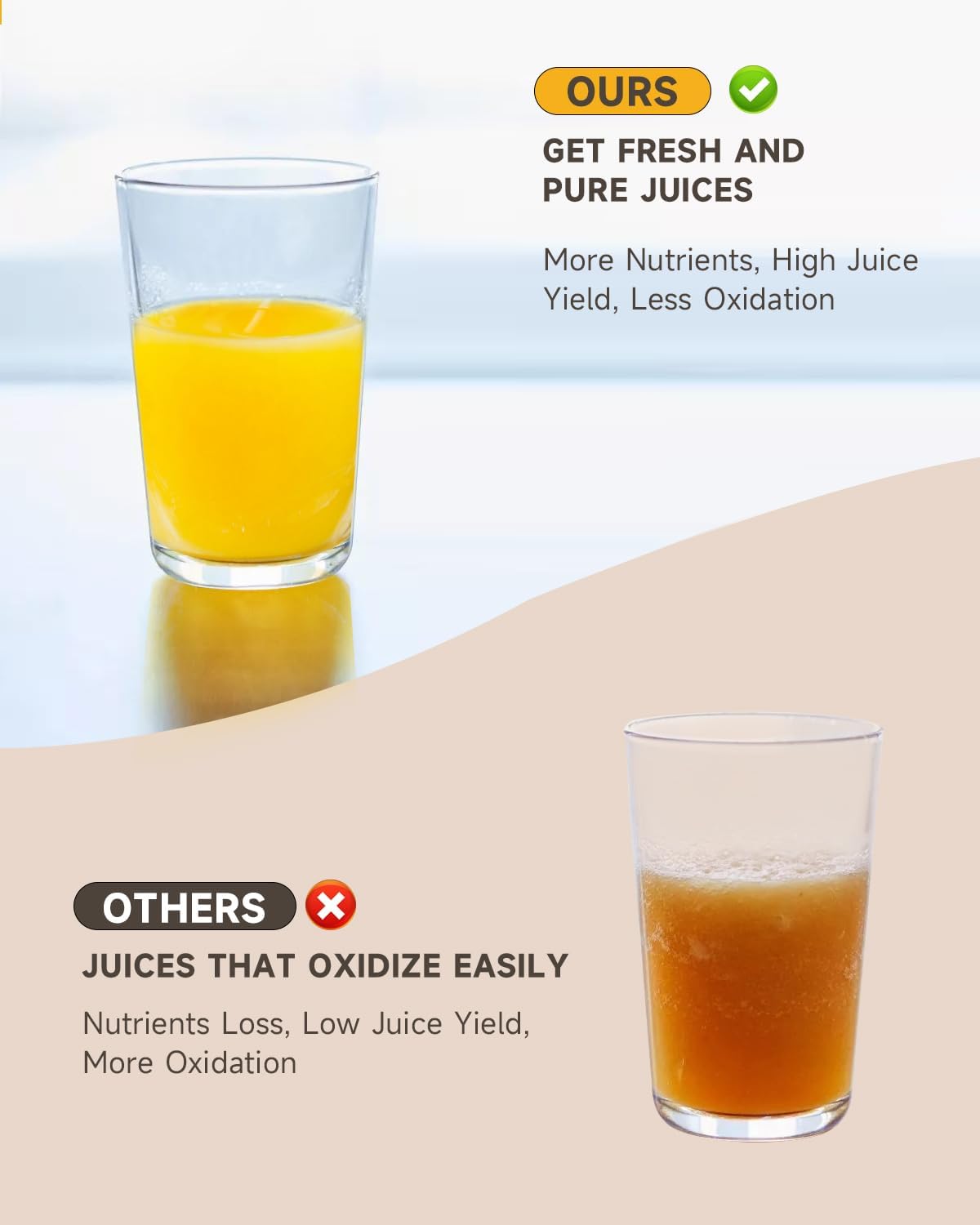 【Powerful Motor, Quieter Running】Equipped with an upgraded 250W copper motor, extended auger and low-noise gears, this machine can crush vegetables and fruits, automatically separates juice and pulp; break coffee beans in seconds for the purest juice and the best flavor. Cold press process, no heat generated, no destruction of juice nutrition, no static electricity, and much quieter than others.