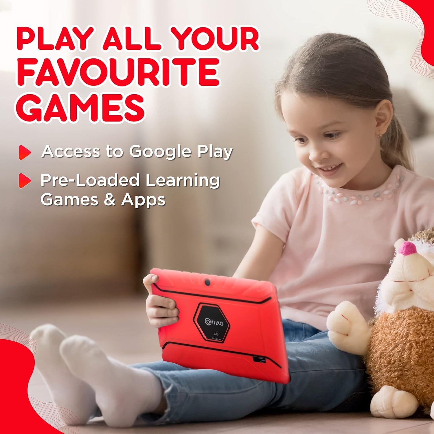 Contixo Kids Tablet V8-7-Inch HD Toddler Tablet with Camera, 32GB, Android, Parental Controls, Kid-Proof Case, 50+ Disney Storybooks – Red
