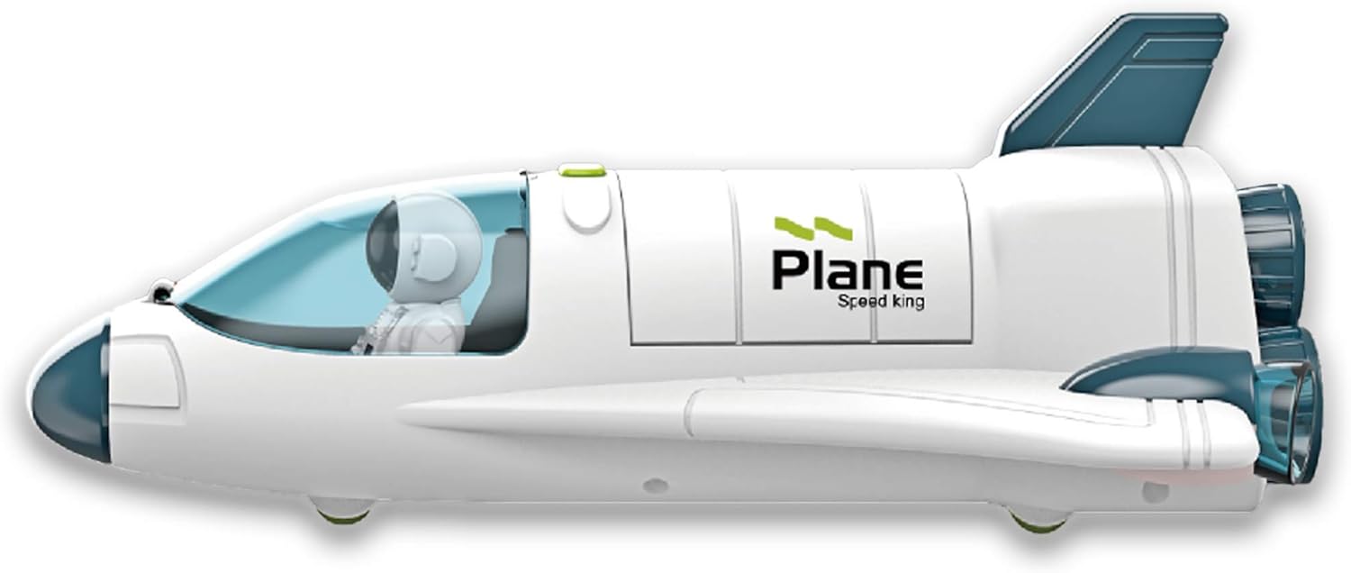 Space Shuttle with lights, sounds, and rolling wheels Open the cockpit, put the astronaut on the seat and close the door Press the button to start the light and engine Flying to the destination, open the cockpit door and place the astronaut on the extended rotating manipulator to explore the universe
