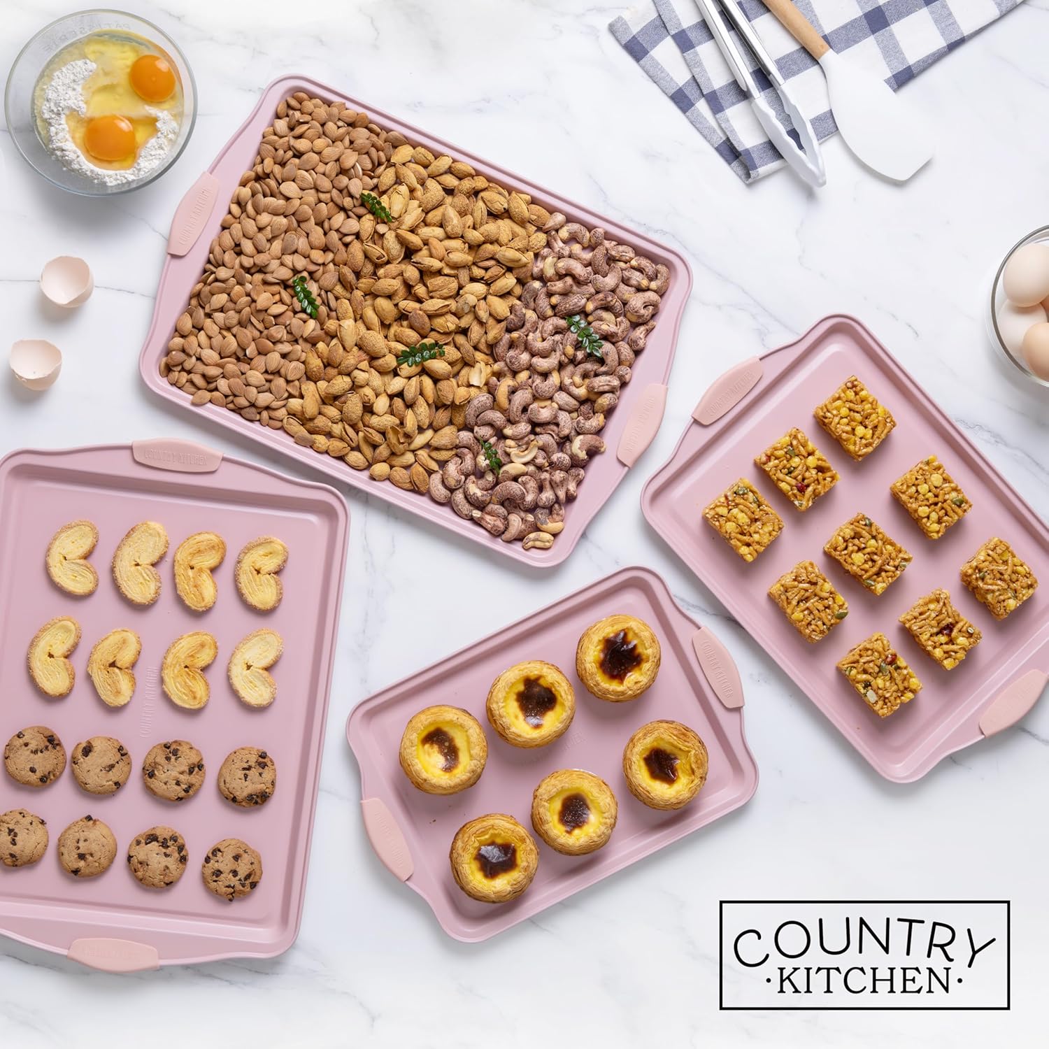 Country Kitchen Nonstick Stackable Bakeware Set – Heavy Duty, Durable, Easy Release Baking Set, Pink, 4 Pcs