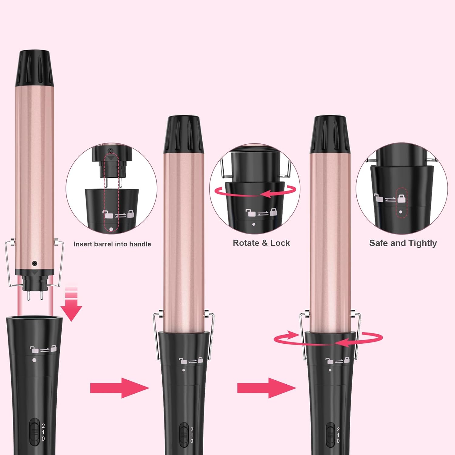Heats up quickly in 30 seconds: easy installation, replacement design, Interchangeable curling barrel. The anti perm tip design can effectively protect your hands from damage from the heating barrel, creating different types of perfect hairstyles;