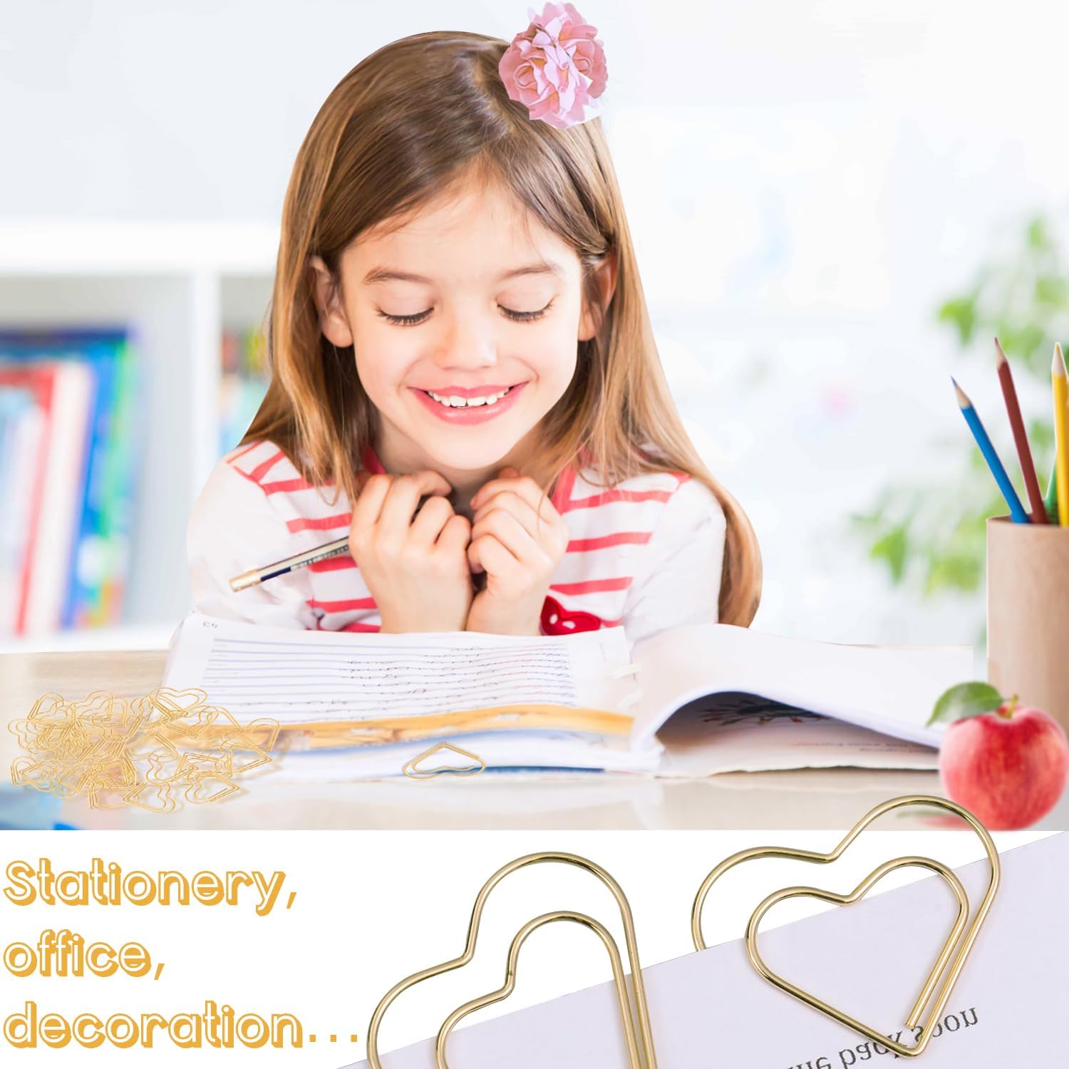 You will receive 100Pcs gold paper clips, the heart shape design makes them cute and funny, can be your perfect office accessories and stationery.