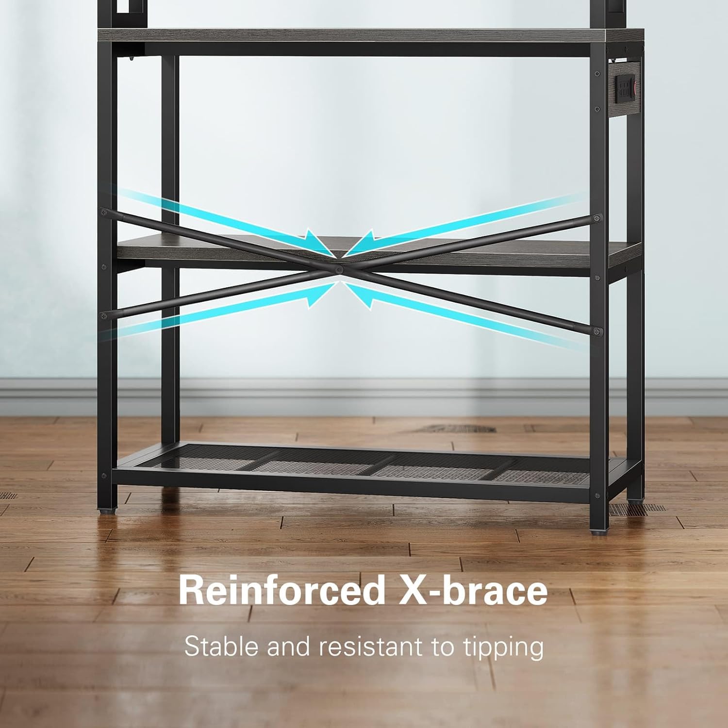 The kitchen stand shelf is also equipped with X-brace, which makes the rack more stable and less prone to tilting.