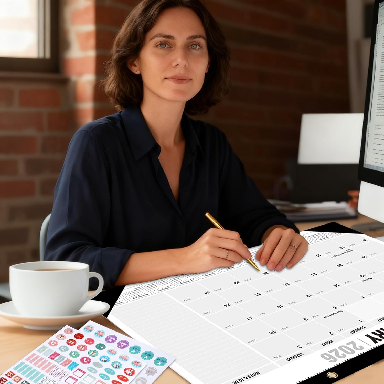 Extra-large size and clear design: This desk calendar2026-2027, measures 22 inches x 17 inches, providing ample writing space and an easy-to-read monthly layout, allowing you to quickly jot down meetings, assignments, or family activities while reducing eye strain.
