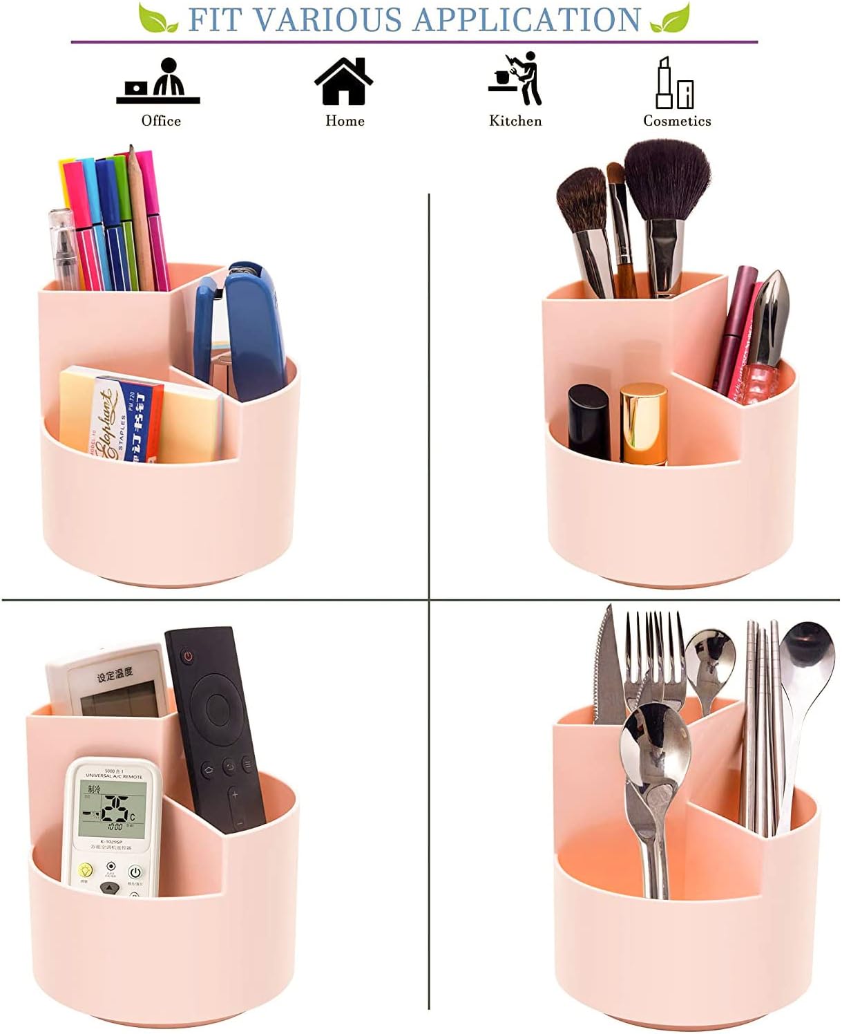 Desk Pencil Pen Holder, Desk Organizers 3 Slots 360-Degree Rotating Pen Holder for Desktop Storage Stationery Supplies Organizer, Home, Office, School, Kids, Peach Pink