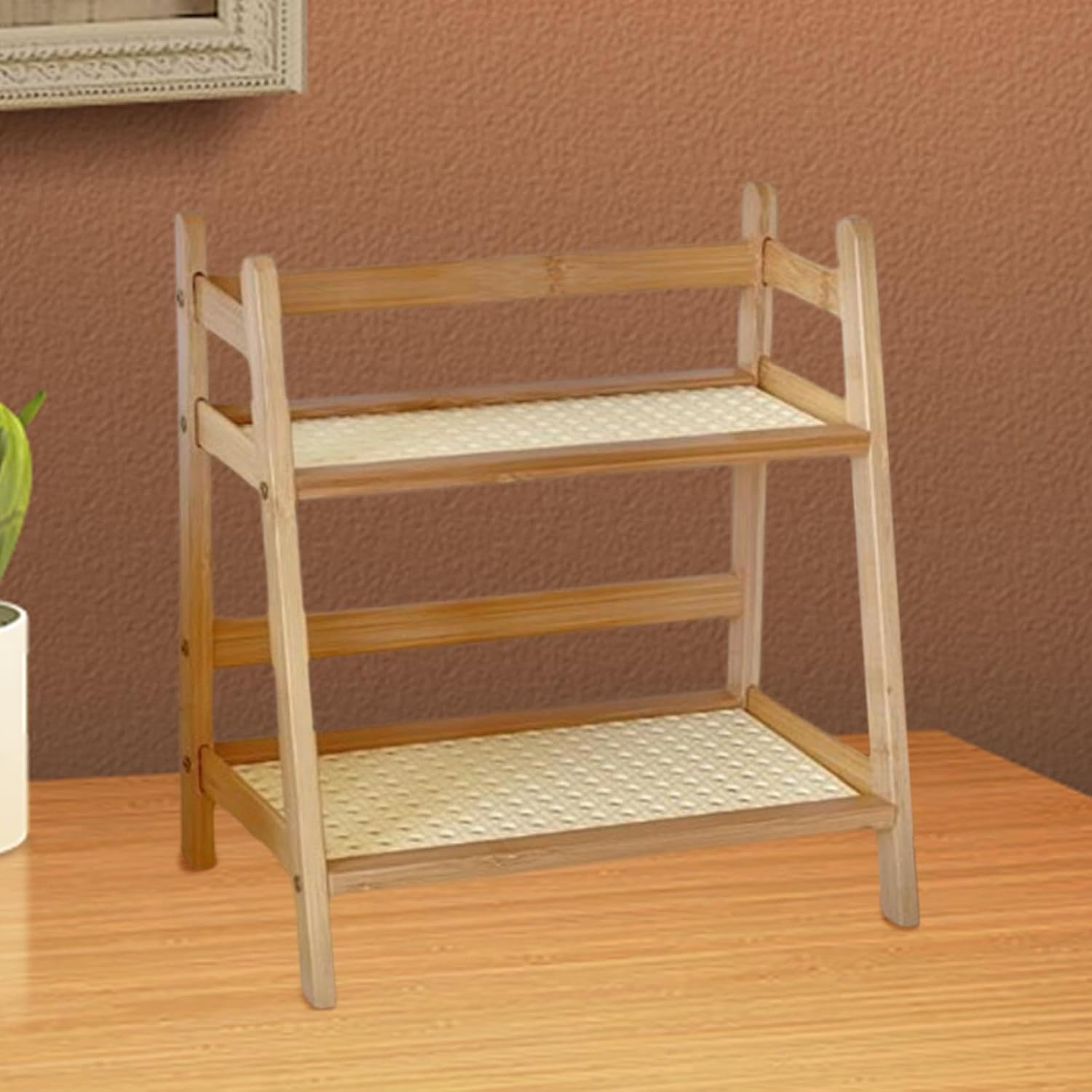 【Size】:2 tier ladder shelves is27cmx18.5cmx29cm/10.63inchx7.28inchx11.42inch