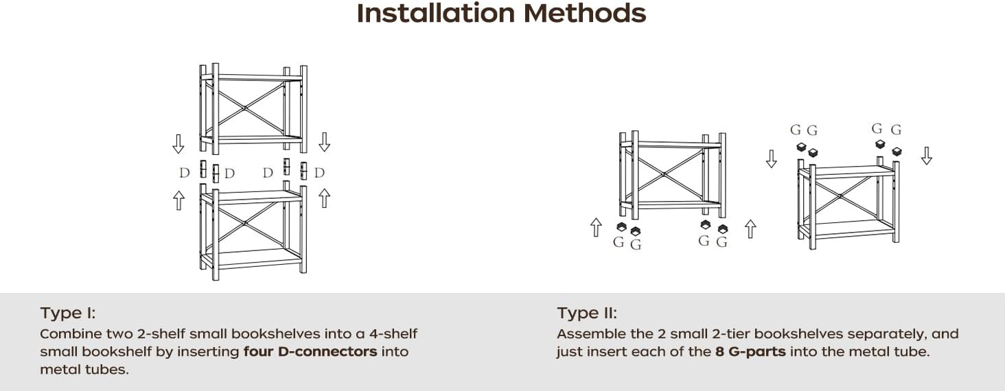 DETACHABLE and STACKABLE DESIGN: This 4-tier desktop small bookshelf is designed to be detachable and stackable, you can make various configurations according to your space and preference. Insert the metal tube to combine two 2-tier desk shelf into one 4-tier desk shelf, pull out the metal tube to split into two 2-tier desktop shelf.You can also choose whether or not to Detachable the shelves depending on the height of the item.