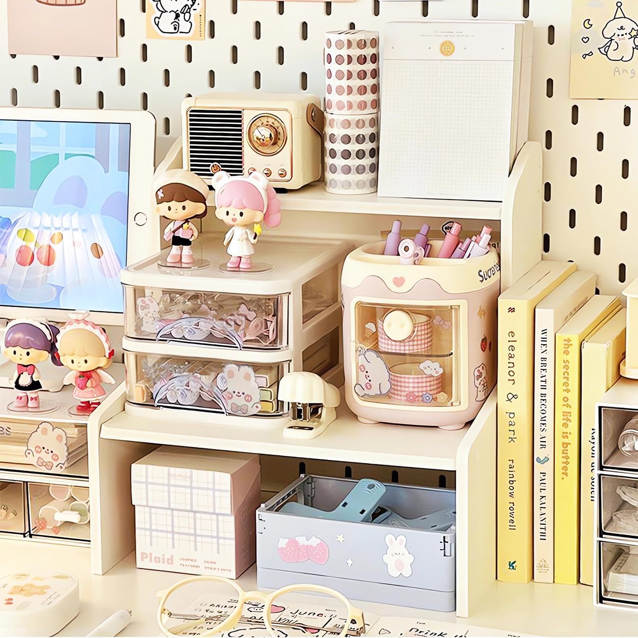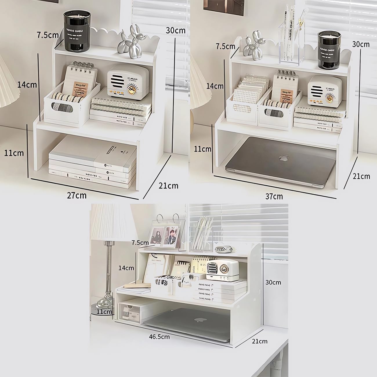 Desktop Organizer Office Desk Storage Rack, Expandable Stand for Top of Desk, Stationery Cosmetics Toy Storage Display, White Desktop Shelf for Office, Dormitory, Home (Small)