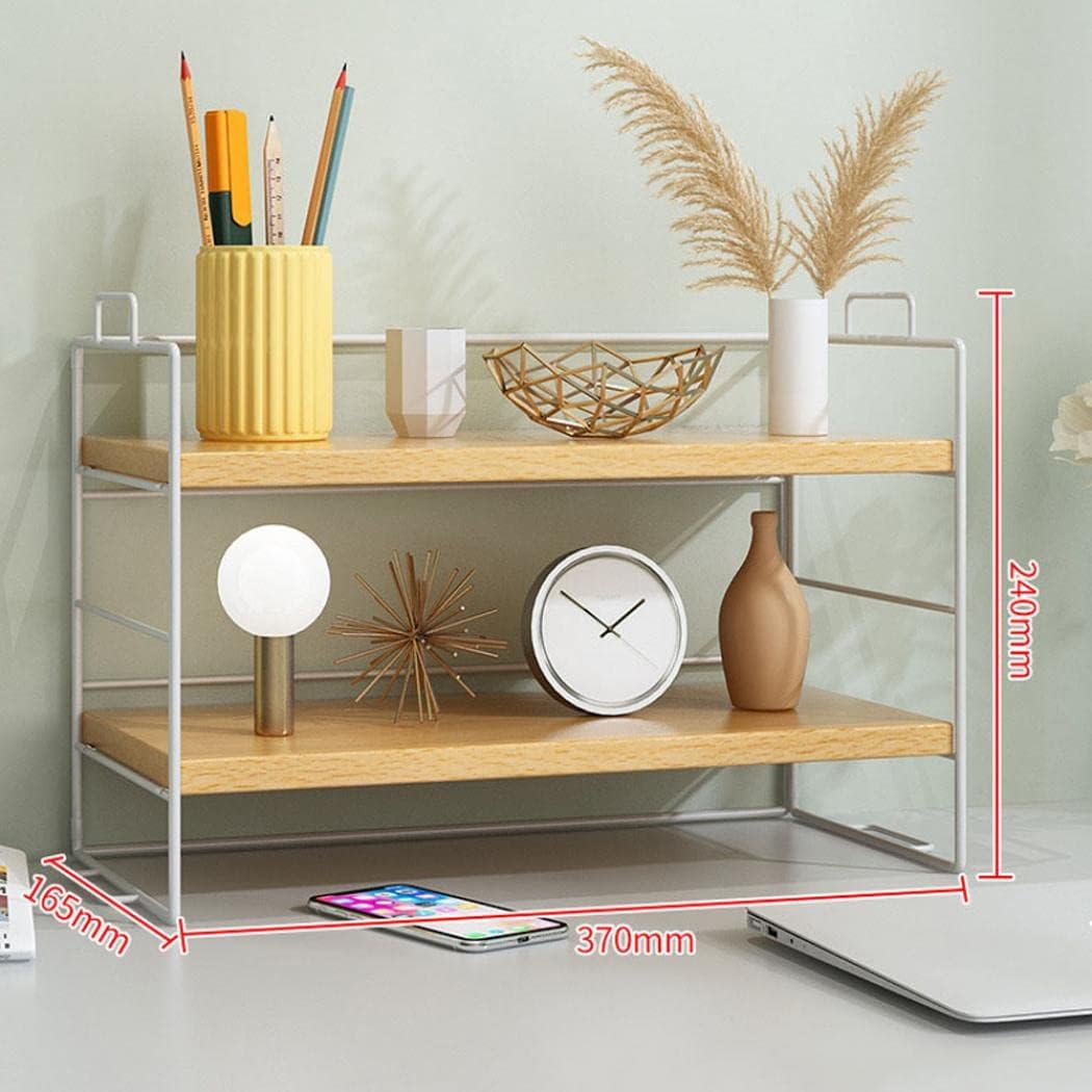 Desktop Shelf Organizer, Small Wood Countertop Bookshelf Adjustable Desktop Organizer Office, Desk Storage Tabletop Display Shelf for Home Office Kids Dorm (Wood White Frame)