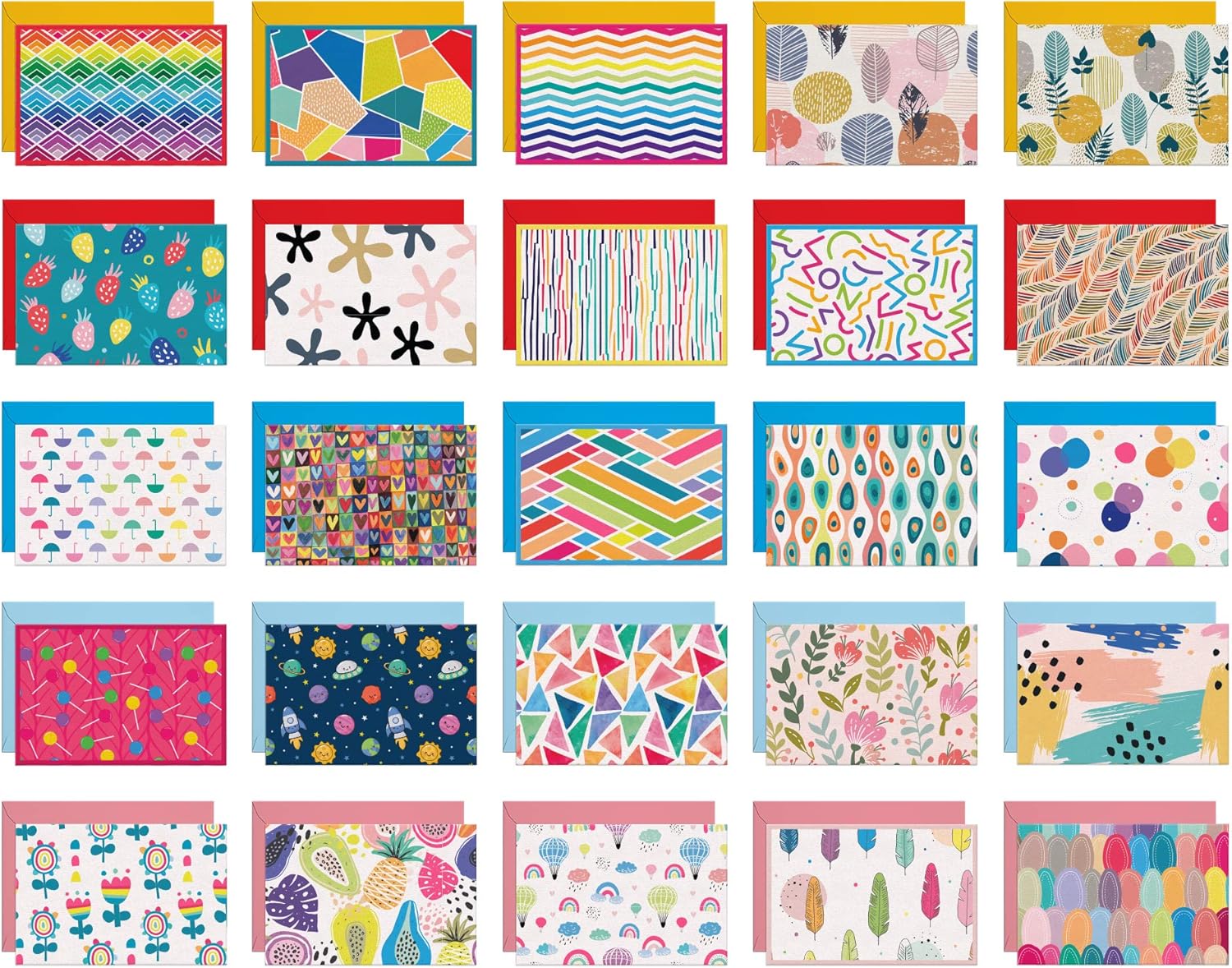 All-Occasion Blank Cards: Dessie’s set of 50 unique 4×6 inch blank greeting cards features colorful designs, matching envelopes, and gold seals—perfect for any occasion!