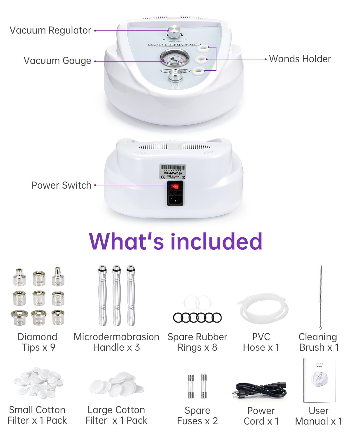 Salon-Level Facial Microdermabrasion: UNOISETION professional microdermabrasion machine removes dirt from pores by using sterile diamond tips, solving multiple skin problems like skin sagging, fine lines, and dull skin, leaving you with smooth and youthful-looking skin.