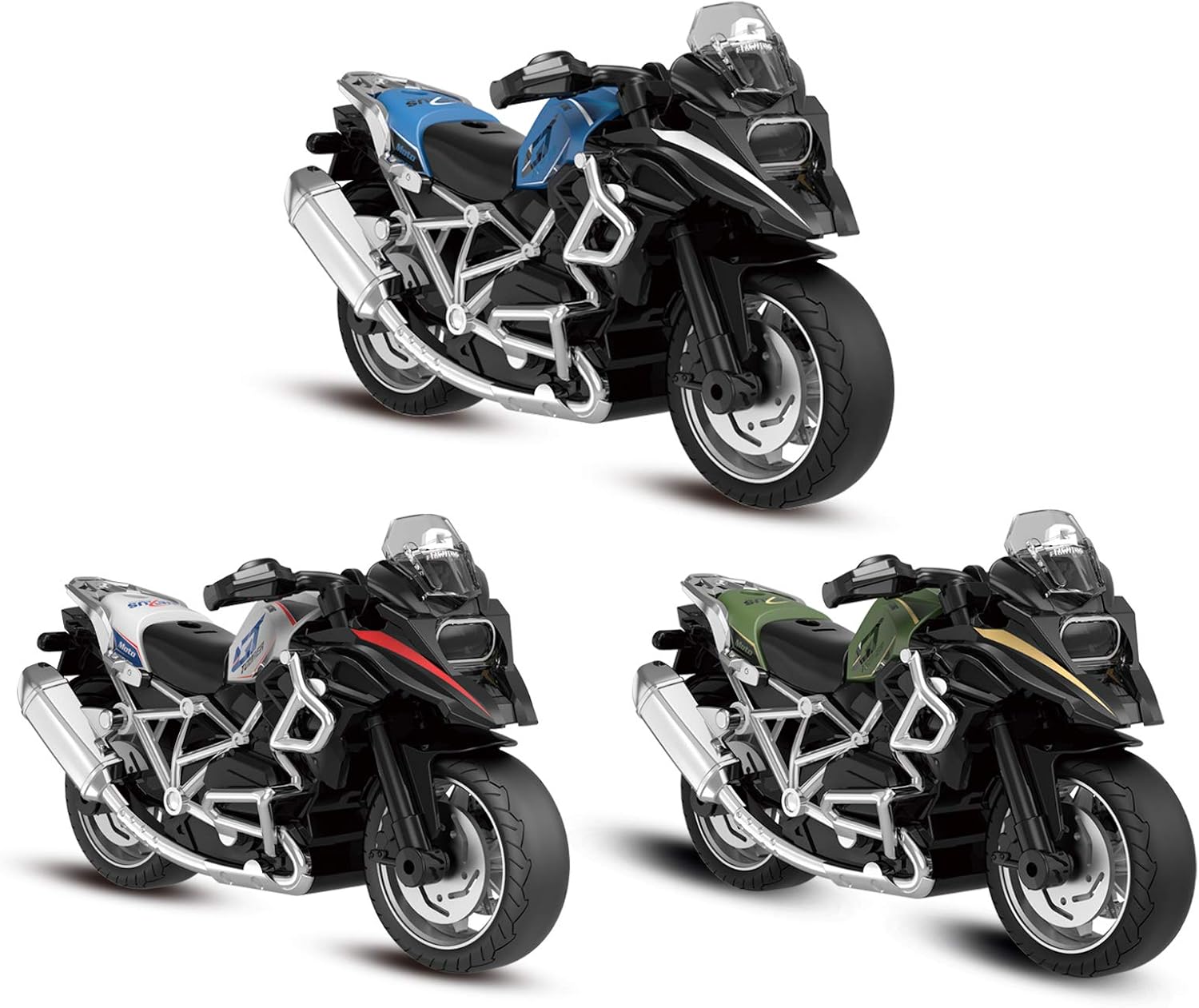 【Safe Toys for Kids】This pull back motorcycle toys are made of high quality ABS plastic and Alloy, safe and 100% Non-Toxic.High quality rubber wheels,anti-skid,shock resistant,strong grip.It made with genuine rubber tires can effectively reduces the impact force.