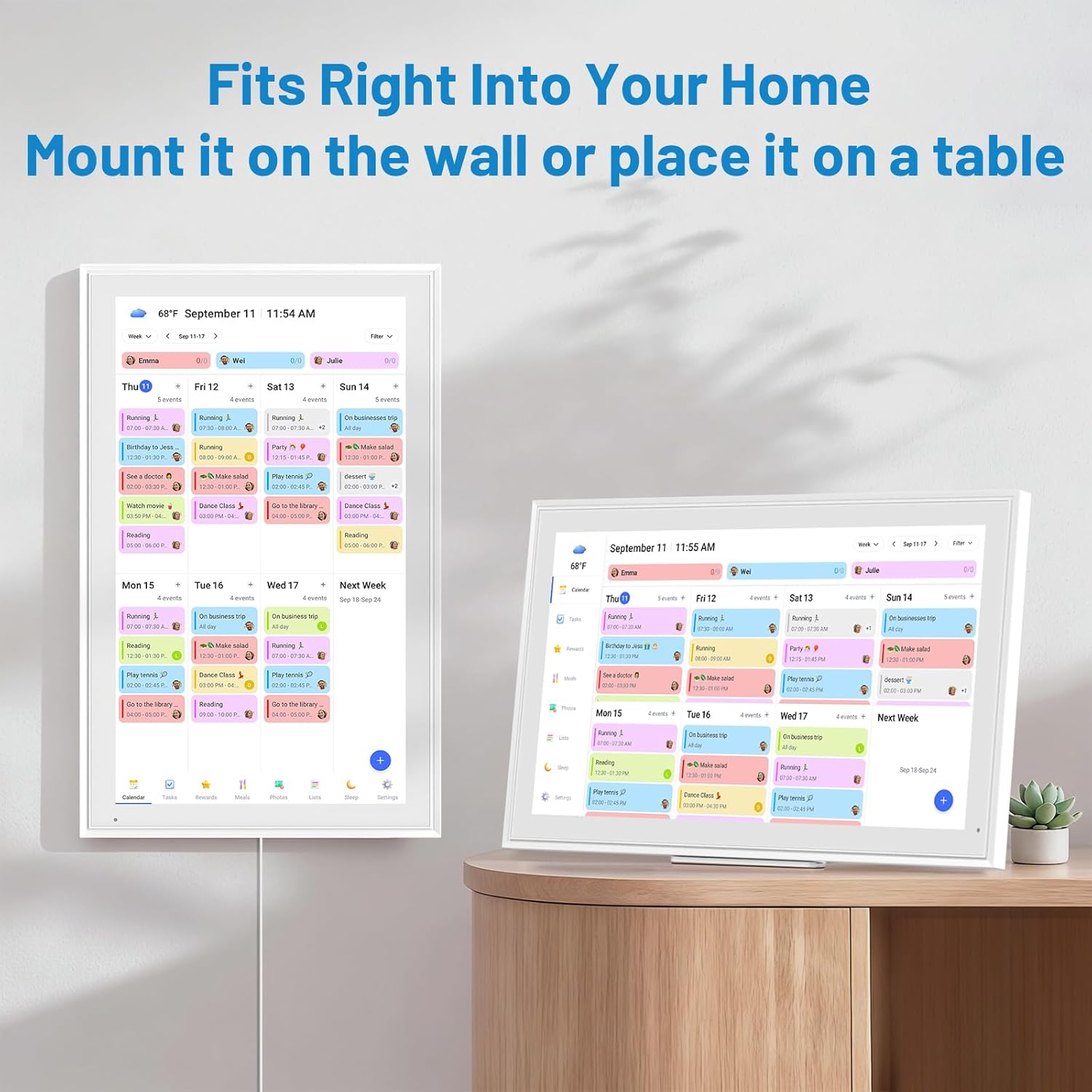 FREELY PLACE DIGITAL CALENDAR — Equipped with a desktop stand or wall mount, it can be switched between horizontal and vertical formats, allowing you to freely design it to fit your home decor.