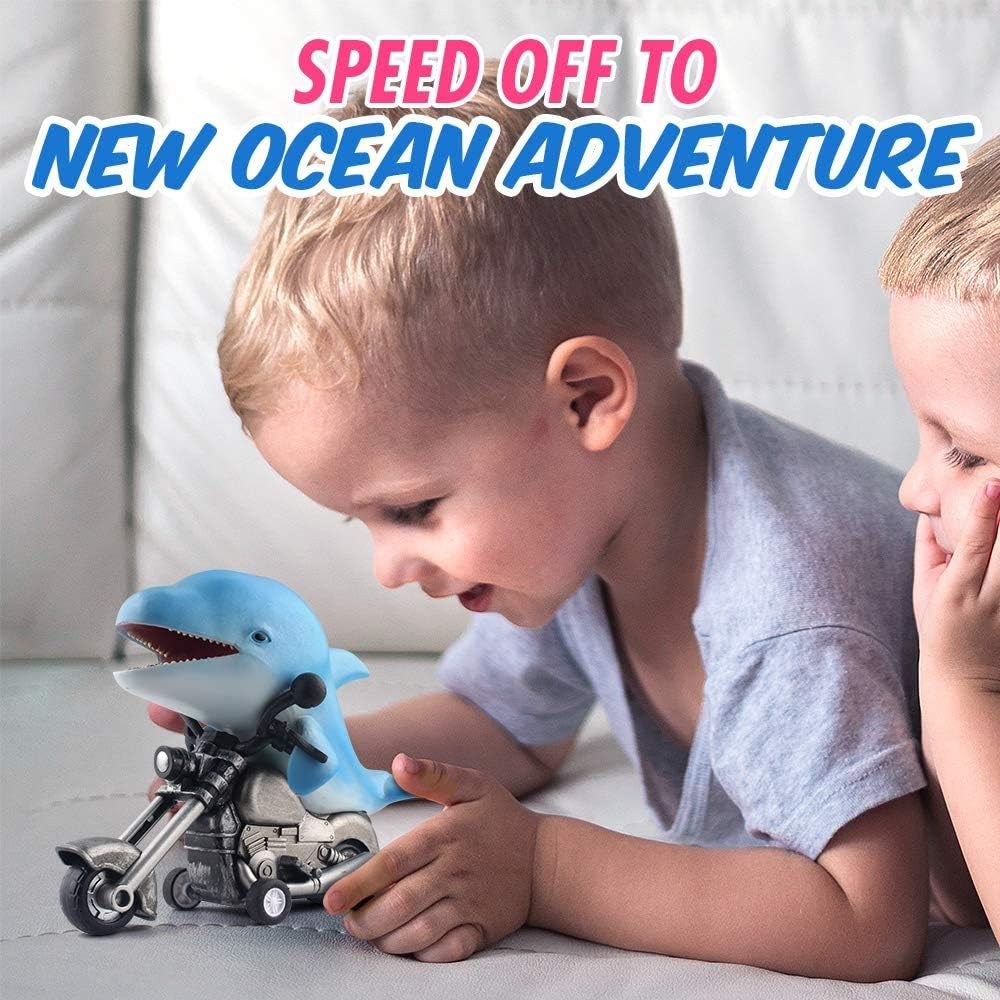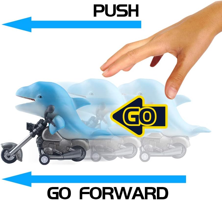 [SHARK & DOLPHIN TOY GIFTS] The ocean animal motocycles are packed by a color gift box. Excellent party favor or a winning prize at a ocean themed party. Great birthday gift ,christmas stocking stuffers or a special toy to gift to any children who love shark and dolphin.