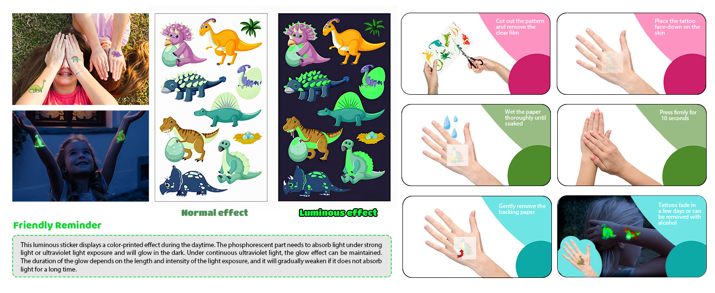 Surprise Inside! Apply Your Random Glow Dino Tattoo