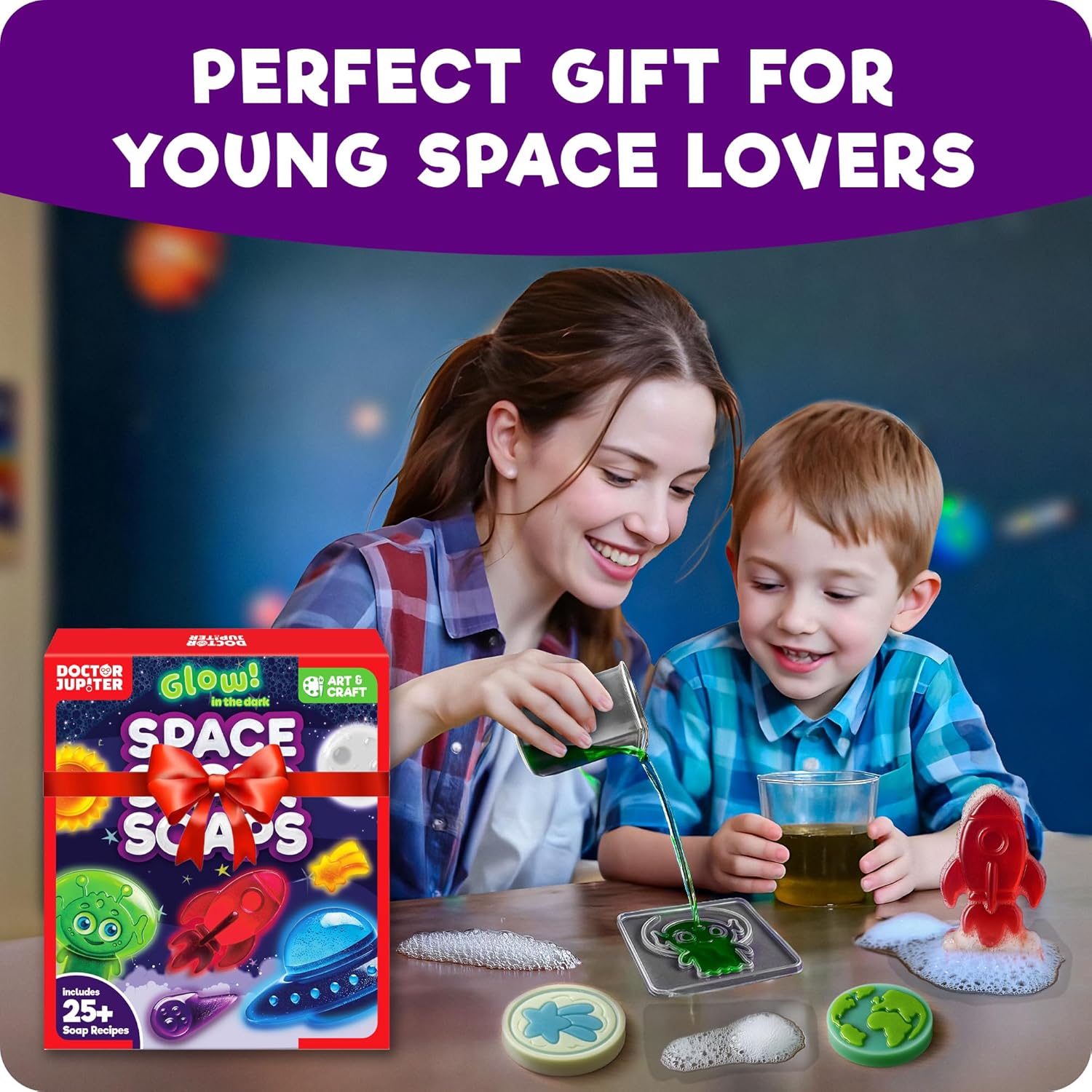 ✅ CREATE YOUR OWN SPACE SOAPS: Doctor Jupiter Space Super Soaps is the ultimate soap making kit for kids ages 4-6-8-12, offering hours of creative fun! Kids can craft glowing soaps in fun shapes like aliens, rockets, and shooting stars – mixing colors and scents for an out-of-this-world creation!