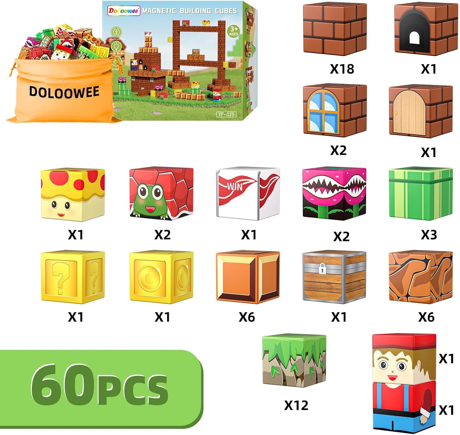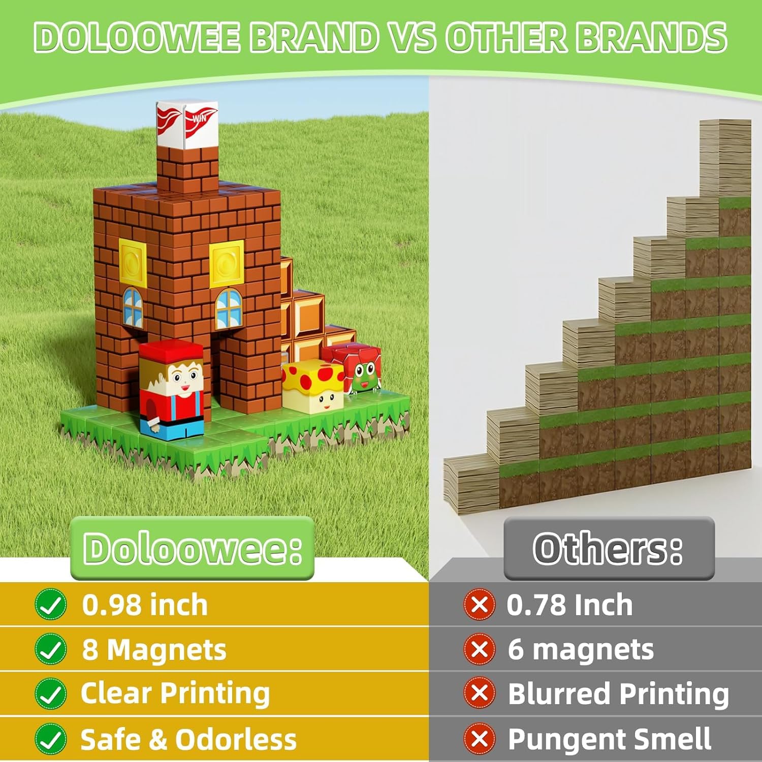 Doloowee Magnetic Building Blocks Sets – Magnetic Cubes for Kids 4-8, Toddler Kids Toys Magnet Blocks Ages 3-5, Mine World Game Themed Gifts Toys for 3 4 5 6 7 8+ Year Old Boys & Girls