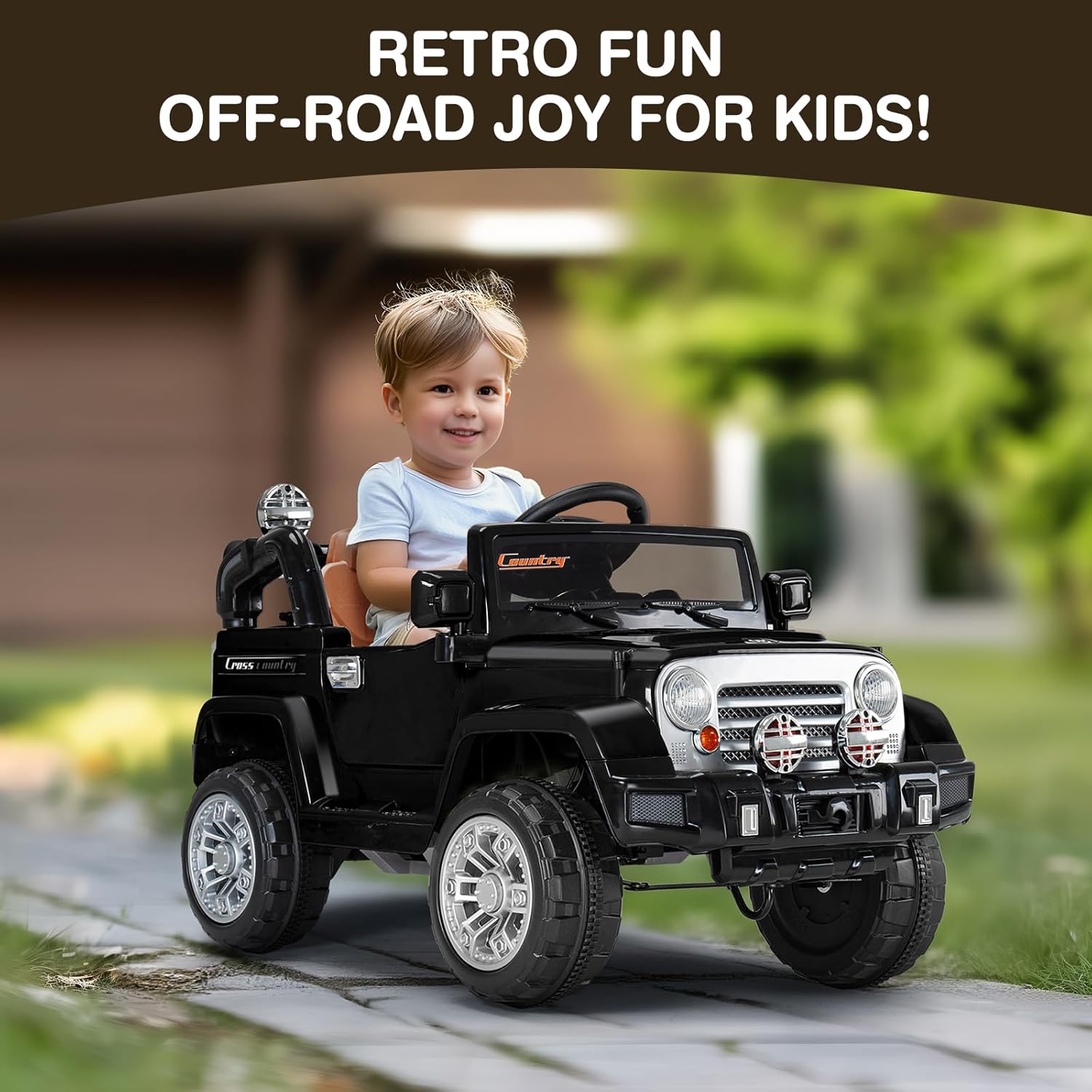 Dreamer X3 12V Kids Electric Car, Retro Ride On Car w/Parent Remote Control, Detachable Toolbox, 2 Speeds, Spring Suspension, Preset Music, 3.8 MPH Max Speed, LED Lights, AUX