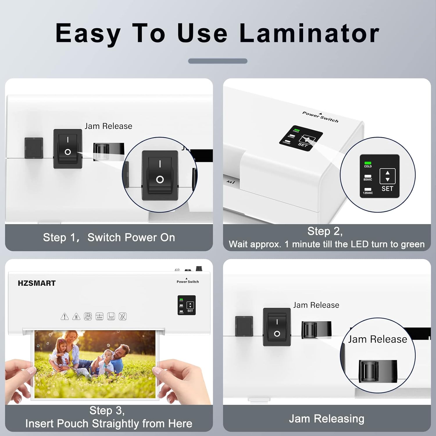 HZSMART LAMINATOR machine is the right-hand man of working, study or daily life Warm up in 1 min, Laminate speed up to 400 mm/min