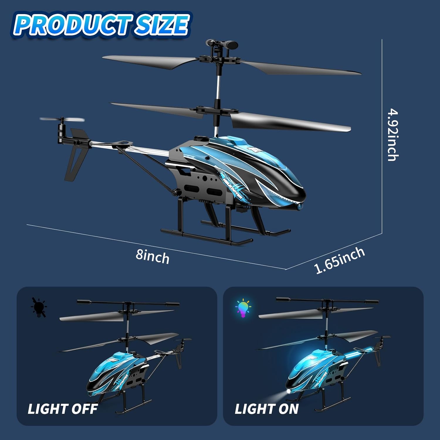 Dwi Dowellin RC Helicopter, Remote Control Helicopter Toy for Kids with 26 Mins Flight(2 Batteries), 8 Light Modes,Easy Control for Boys Girls Age 8-12(Blue)