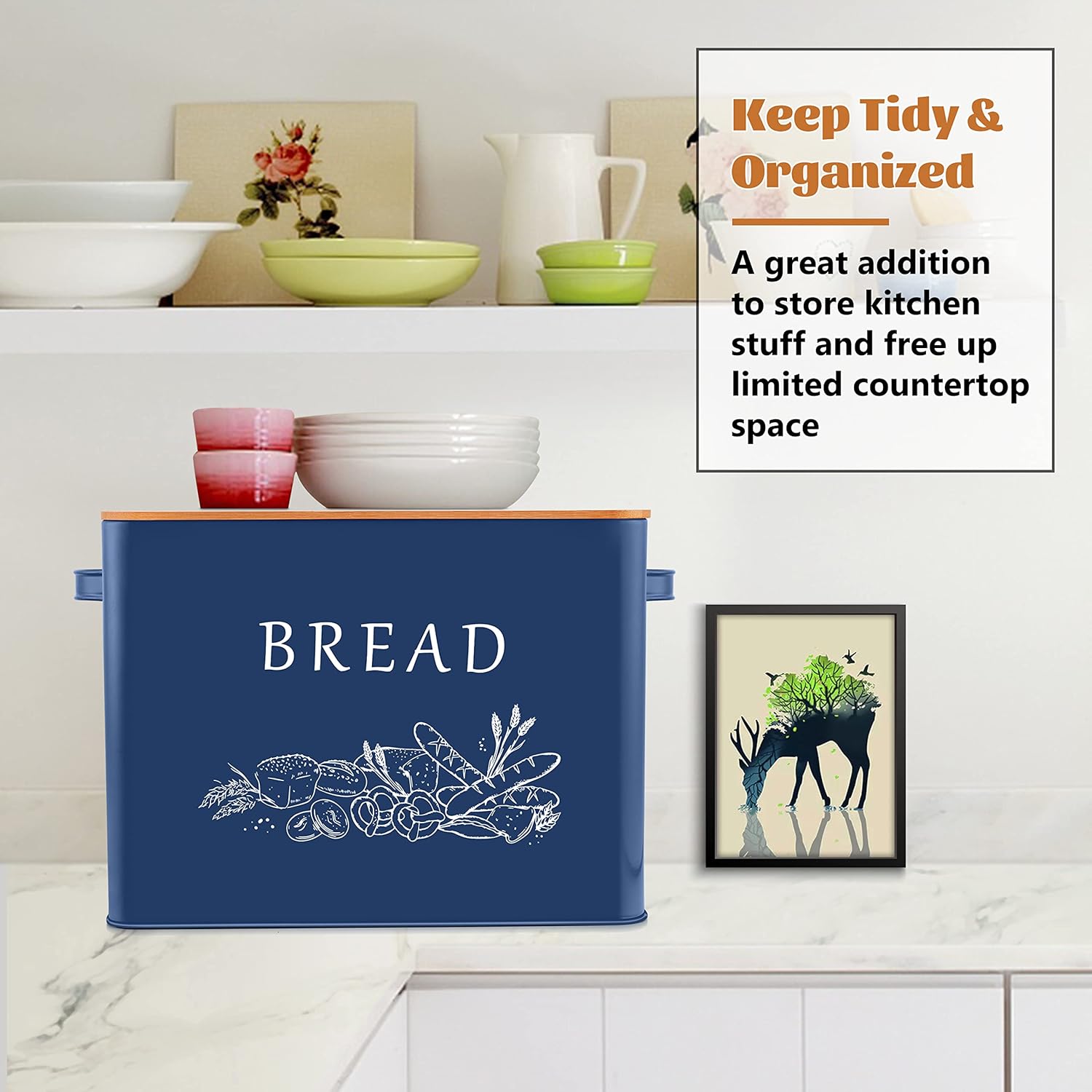 KEEP BREAD FRESH & FREE UP SPACE- Lifted-off lid is cut to set inside box to keep away moisture and avoid your bread doughy quickly, Keep bread fresh and prolong the life of the foods, Also great to storing kitchen stuff to free up limited countertop space, Keep your kitchen tidy and organized, A great addition to the counter or farmhouse