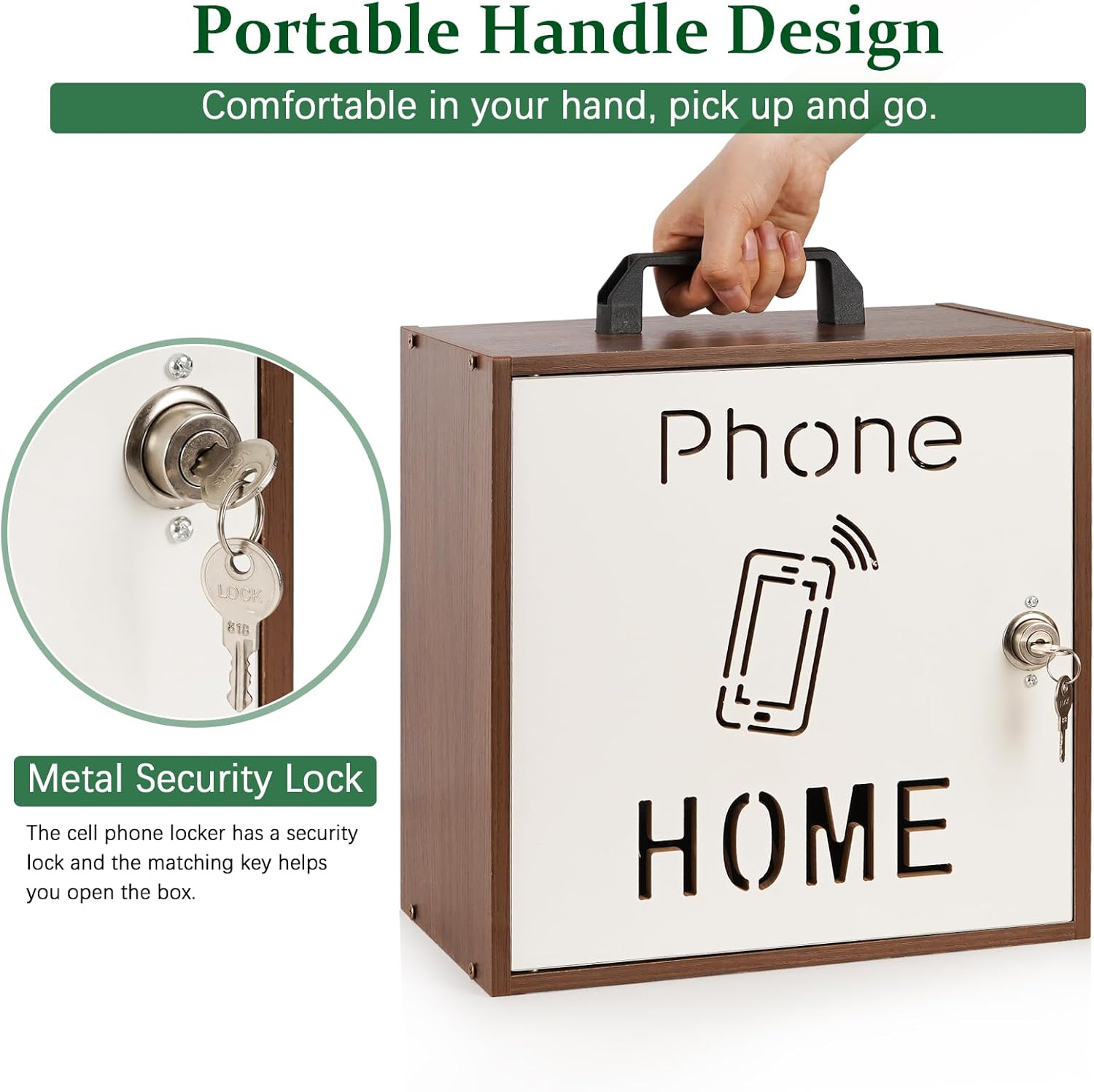 High Quality Material: The classroom phone holder is made of high quality wood, stable and enduring, strong and practical. It can hold up to 33 cell phones to meet your needs.There are store up to two keys to the safe. Take care of your keys, don’t get them to lost.