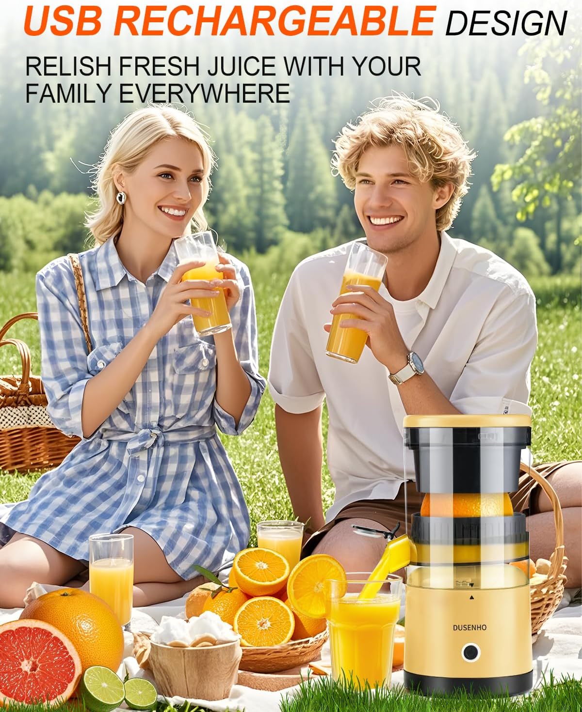 Electric Citrus Juicer Rechargeable – Electric Juicer Machines with USB and Cleaning Brush Portable Compact Juicer for Orange, Lemon, Limes