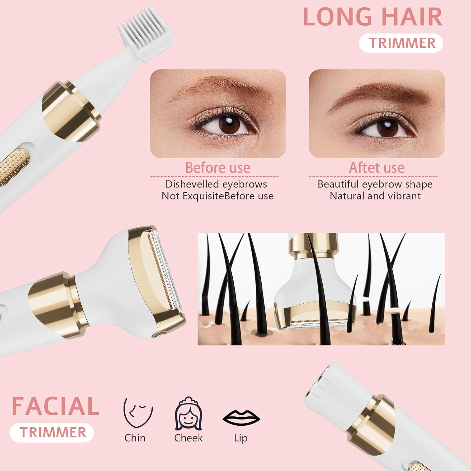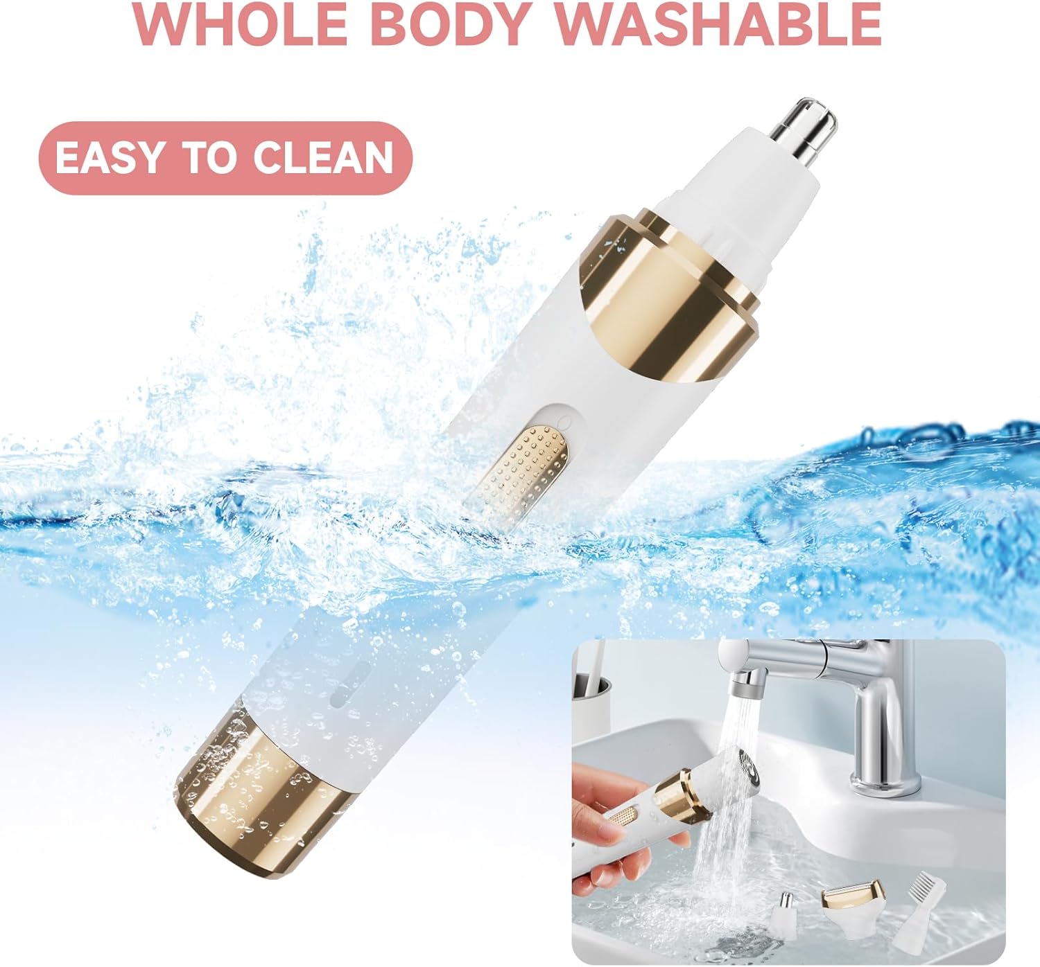 【Electric Razors Packing List】Our women’s Electric Razor comes with 4 interchangeable heads – a Double-sided Razor Head, a Rotary Facial Hair Trimmer Head, a Nose Trimmer Head, an Eyebrow Trimmer Head also with a Detachable Limit Comb, a USB Cable, a Cleaning Brush, and a User Manual.