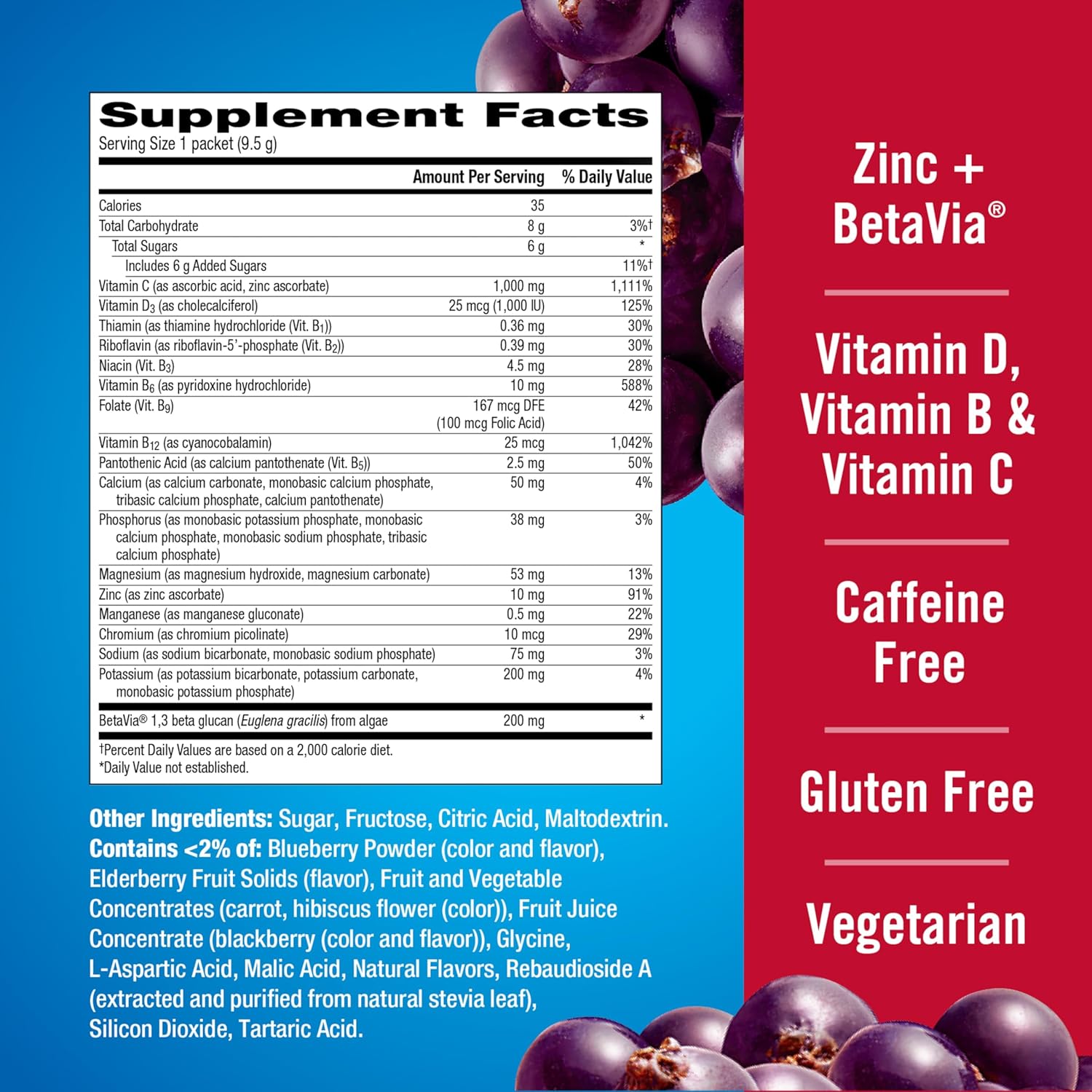Emergen-C Elderberry fizzy drink mix provides daily immune system support with the natural goodness of botanicals