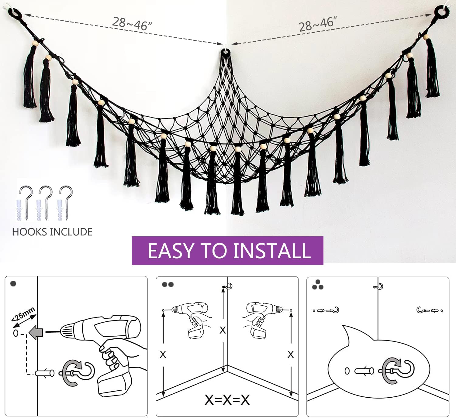 Easy to Install】The wall mounted corner hanging fitness ball rack can be easily installed to most room with hanging hardware (Hardware included).Keep your home, gym, fitness center, garage, or exercise club clutter-free with this exercise ball storage hammock.