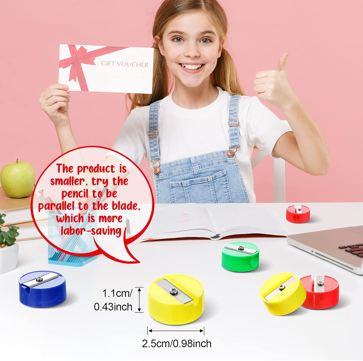 Easy and Convenient to Carry: the colored pencil sharpener measures about 2.5 x 2.5 x 1.1 cm/ 0.98 x 0.98 x 0.43 inches, lightweight and portable, suitable for using in the pockets, bags, pencil cases and so on, suitable for you to use it at any time you want