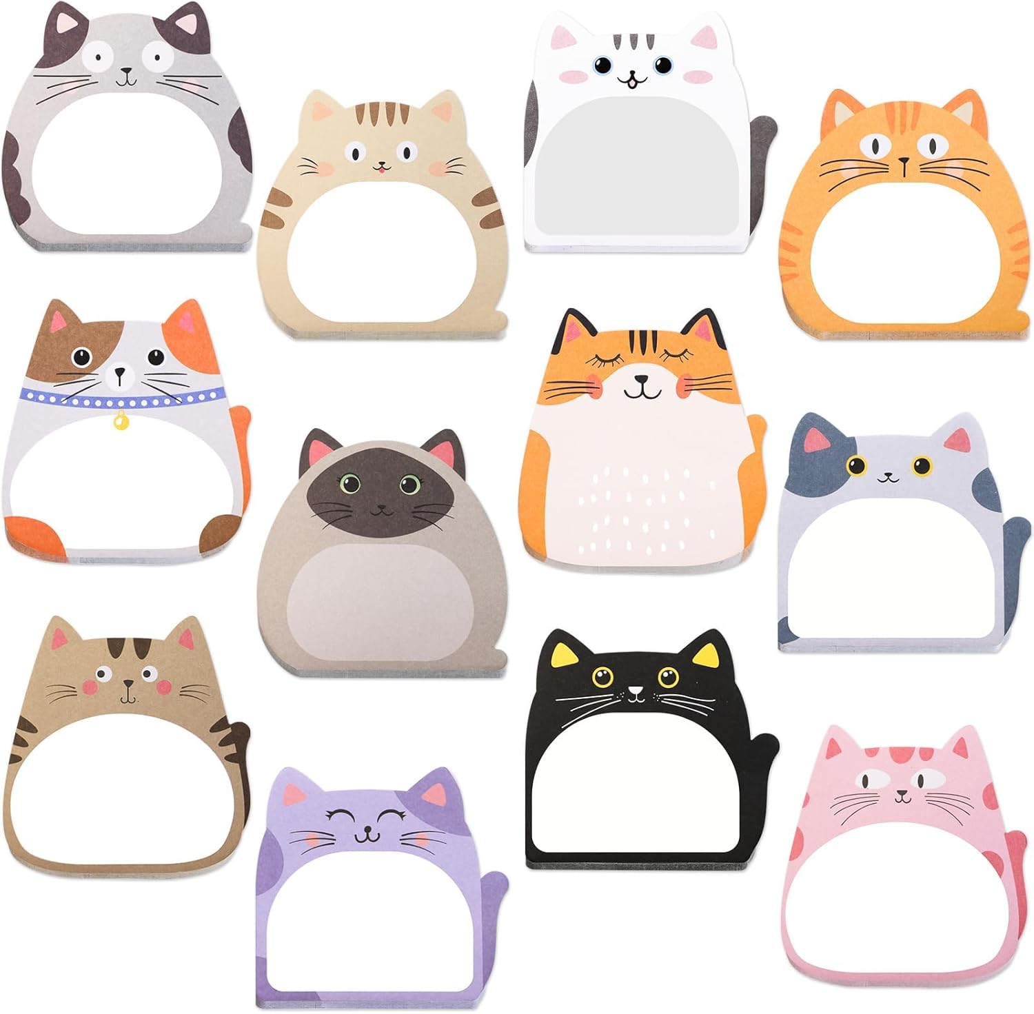 Package Includes: 24 pads of cute cat sticky notes; 12 different shape styles; 30 sheets for each pad; Each side measures about 2.6-3 inches