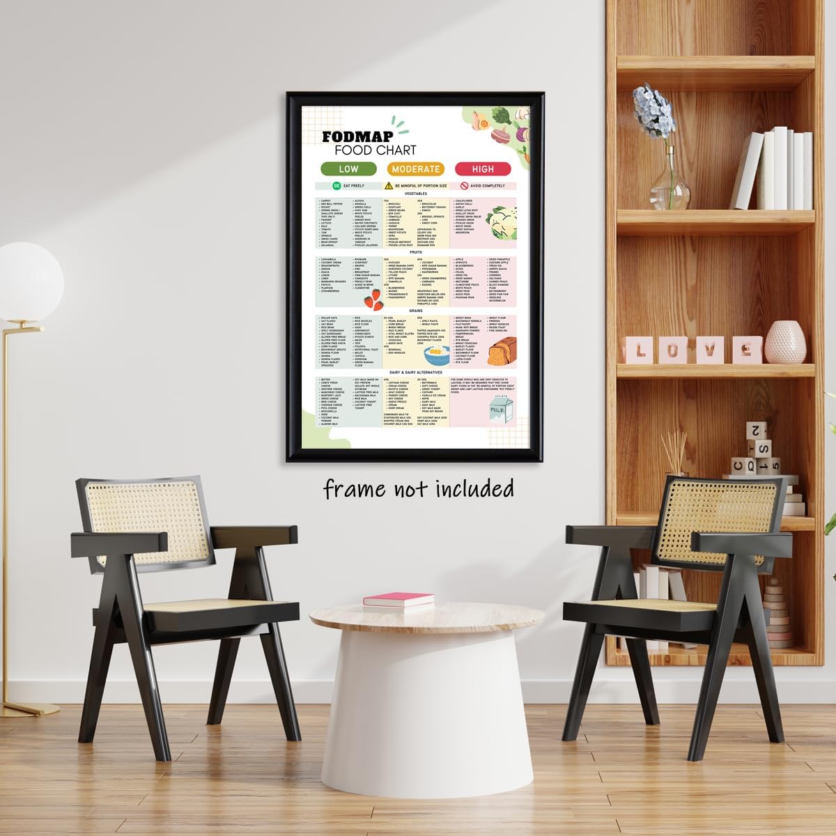 Fodmap Food List and Low Fodmap Treats Poster(2), Gluten Free Diet Meal Prep Grocery Food Chart Nutrition Guide for Gut Health and Meal Plan Wall Art 12x16in Unframed