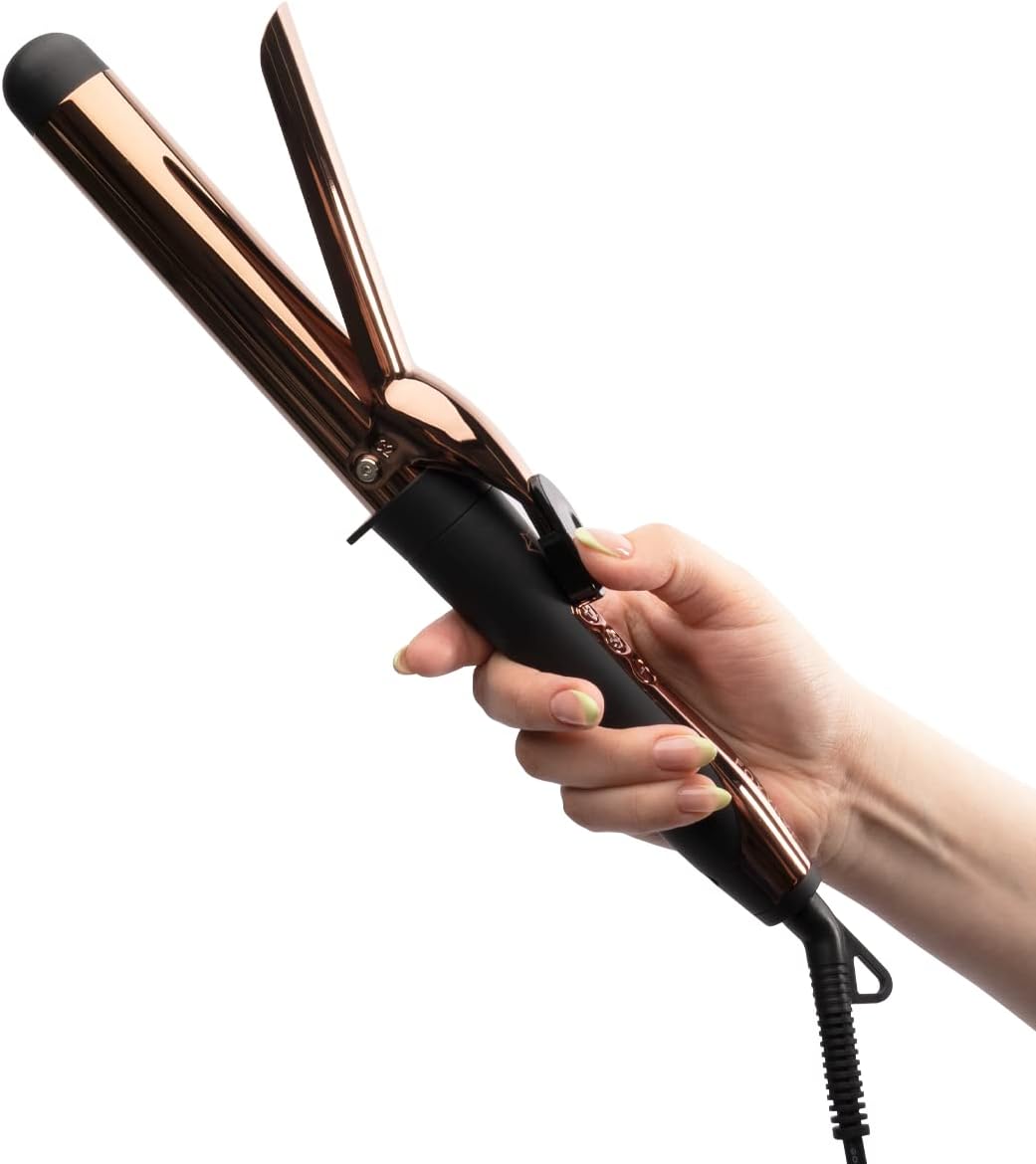 Ready for an upgrade from traditional curling irons? Add some GLAM to your routine with our first-ever spring curlers (with a clip!). Our Glam Fam Rose Gold Spring Curling Irons feature salon-grade Rose Gold Titanium barrels that quickly and evenly distribute heat to create the longest lasting, smooth, and shiny curls yet. This is for you if you have thick, coarse, or stubborn-to-style hair! Enjoy quick and even heat distribution that helps you achieve maximum results in less time. Its rose gold titanium barrels seal in your hair’s natural moisture and leaves a beautiful shine. Each Rose Gold Titanium Spring Curling Iron features an On/Off switch with a power indicator light, digital heat settings up to 430°F, cool tip, cool touch thumb press, an 8-ft tangle-free 360° swivel cord, and a built-in safety stand. 1″/ 25mm: defined, voluminous curls – good for all hair lengths 1.25″ / 32mm: big, beachy curls – good for shoulder length and longer hair 2″ / 50mm: loose, relaxed waves – good for longer hair