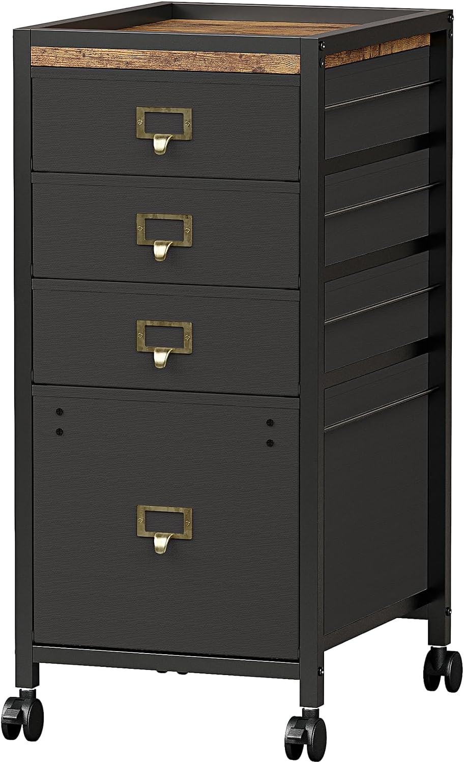 GAOMON File Cabinet, Filing Cabinet with 4 Drawer, Mobile File Cabinets Fits Letter Size or A4, Fabric Vertical File Cabinet on Wheels, Home Office Small Under Desk Storage Cabinets, Black