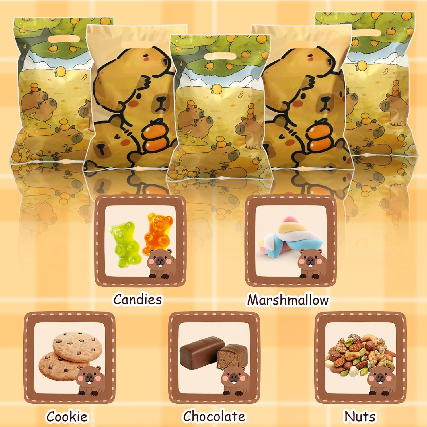 10 PE Bags (17x25cm/ 6.7×9.8inch) – Sturdy, reusable, and eco-friendly, featuring cute capybara prints.