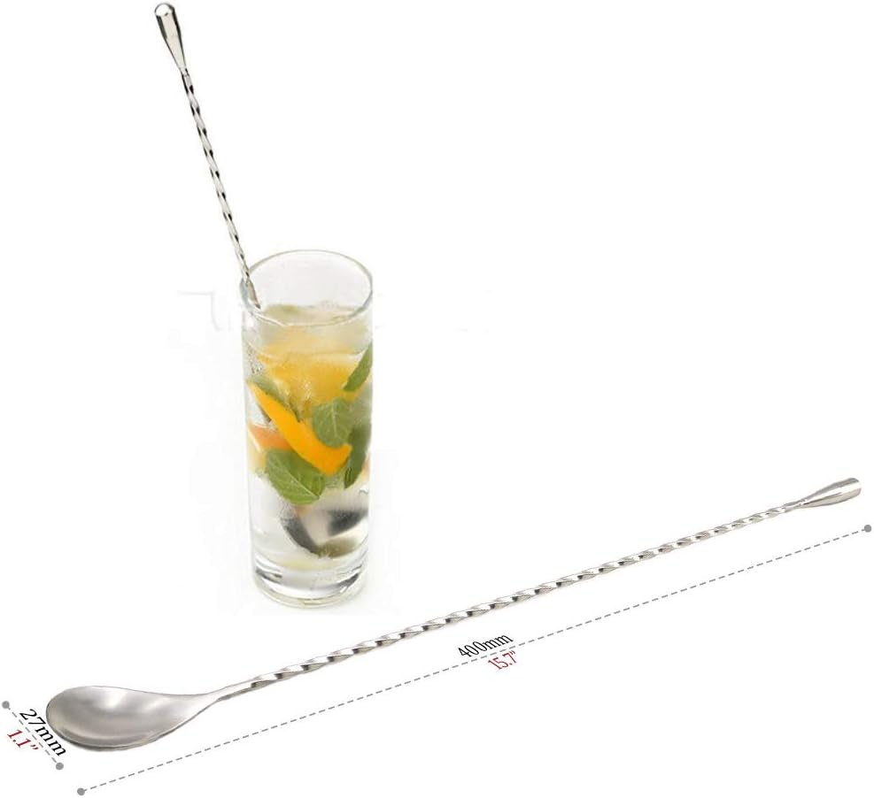 GFDesign 15.7“ Extra Long Cocktail Mixing Spoon Set Food-Grade 18/8 Stainless Steel Stirrer Spiral Pattern Bar Cocktail Shaker Spoon for Ice Cream Smoothies Malts Milkshakes Juice Coffee Tea Drink