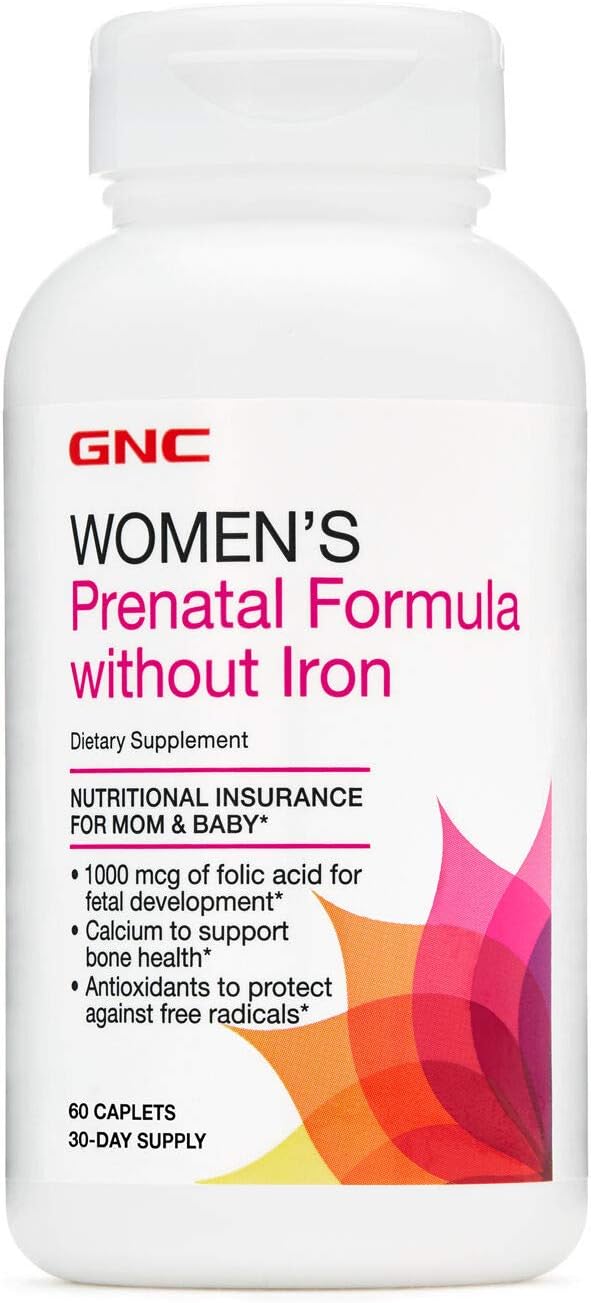 The GNC Women’s Prenatal Formula without Iron provides nutritional support for Mom & Baby before, during, & after pregnancy. This product features 1000mcg of folic acid which helps with fetal development and is required for cell growth and DNA formation.