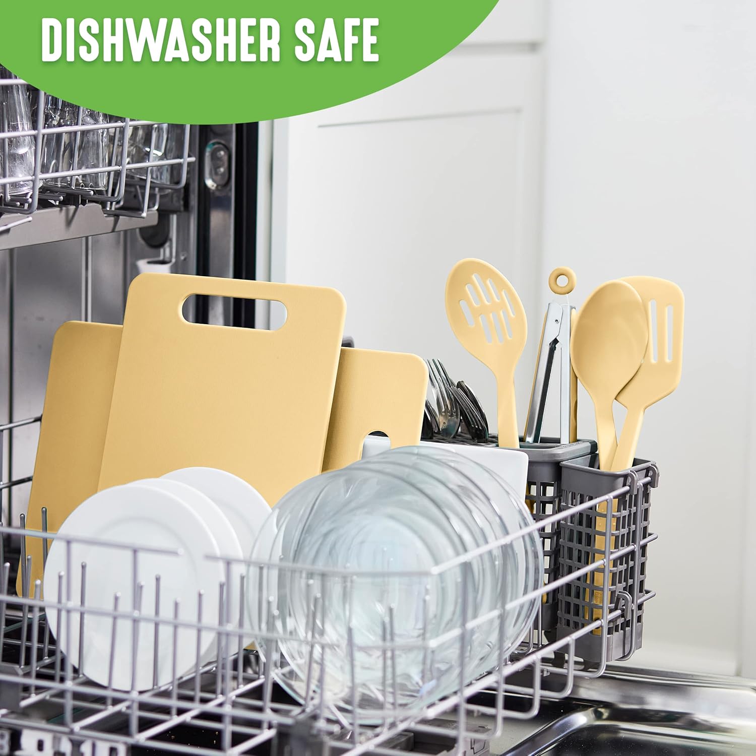 DURABLE CUTTING BOARDS: The cutting boards have vibrant yellow color with durable construction, crack and chip resistant
