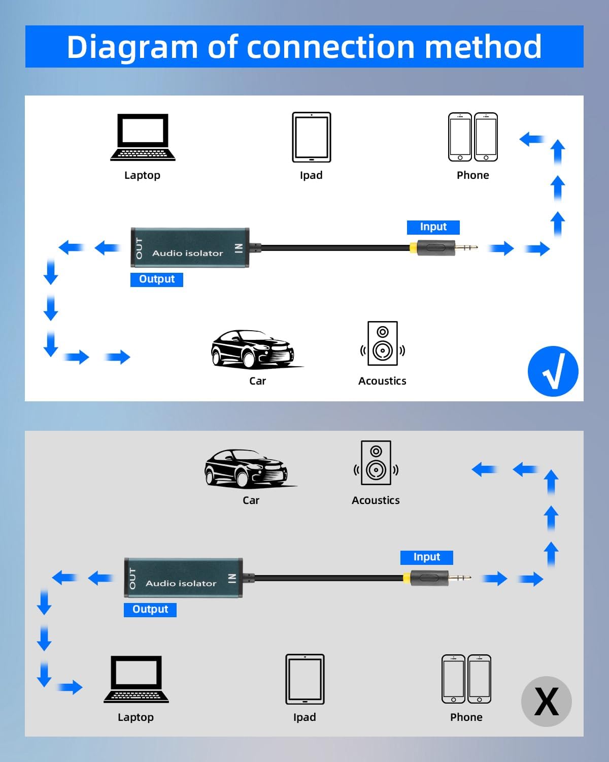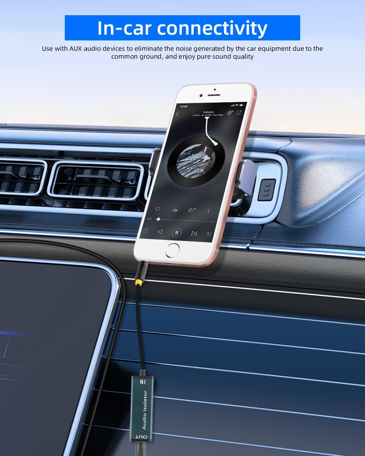 3.5mm ground loop lsolator, using a gold-plated interface, stable signal transmission, anti-oxidation, no rust, the shell is made of alloy, high hardness, more durable