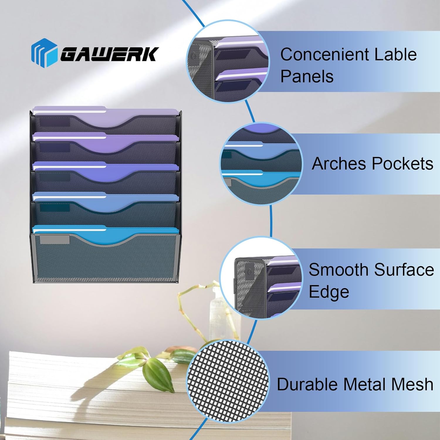 ✏️ Sturdy Metal Structure: Wall file rack organizer is made of high-quality metal material with sturdy metal construction and durable powder-coated surface.