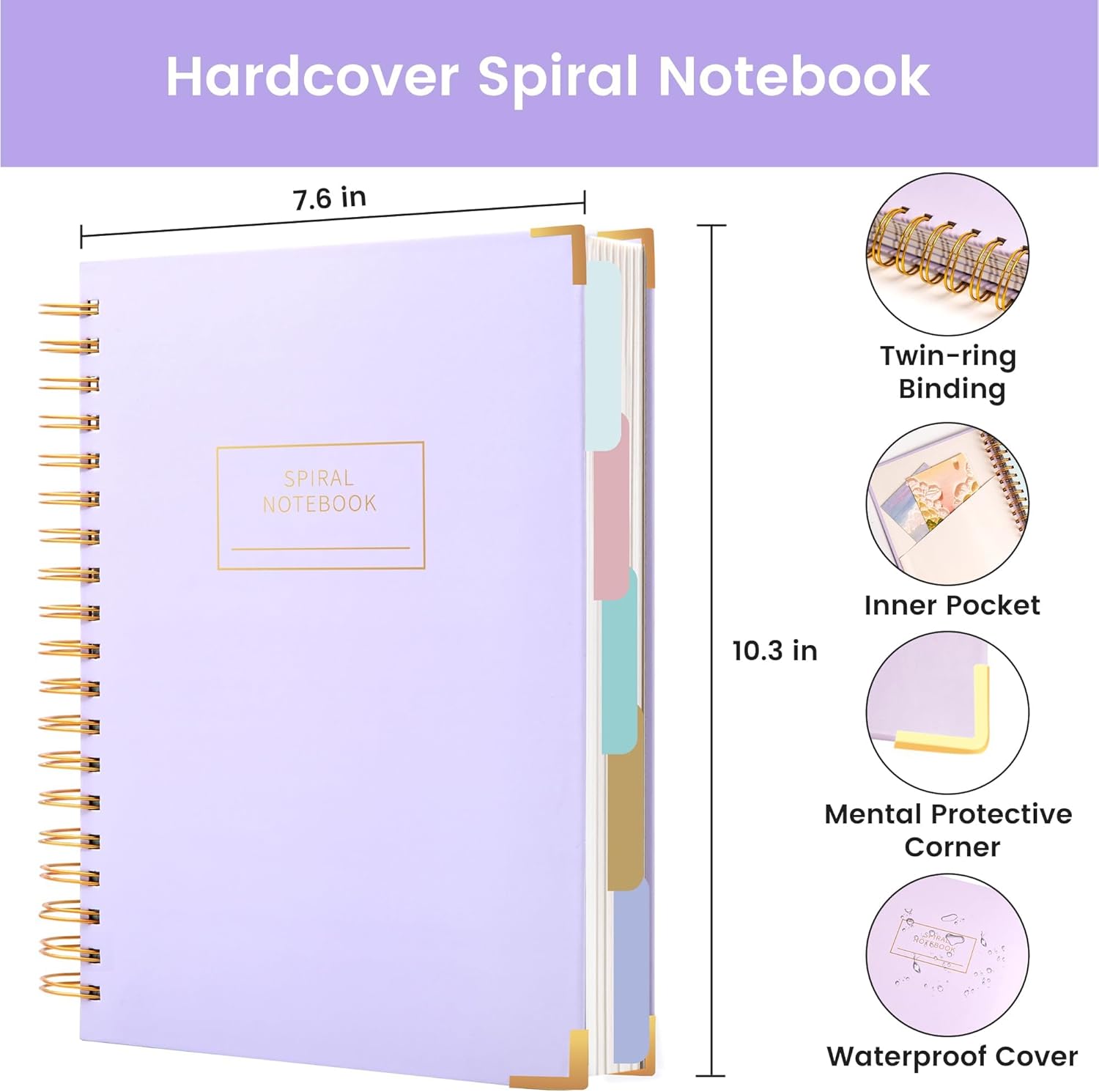 Hardcover Spiral Notebook with Tabs 8″x10″ Large Spiral Lined Journals for Women with Dividers 240 Pages College Ruled Composition Notebook 5 Subject Notebook for Work, Back to School, Gifts, Purple