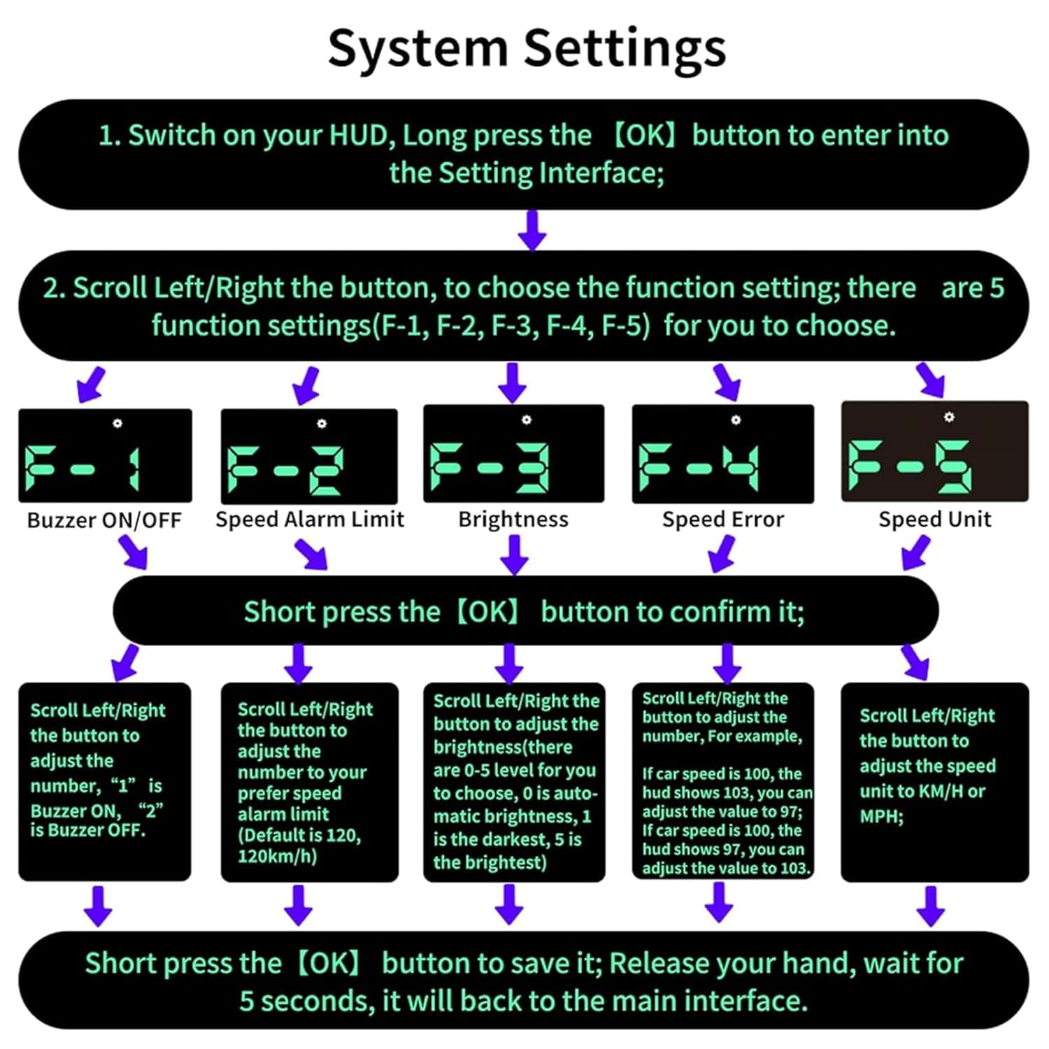 Clearer Display: Our HUD displays speed in MPH by default, with a maximum display speed of 115 mph, and utilizes a large font design and metal shading technology that effectively eliminates unwanted reflections and ensures a clearer display so that even older drivers with weak eyesight or those wearing sunglasses can see the speed very clearly.