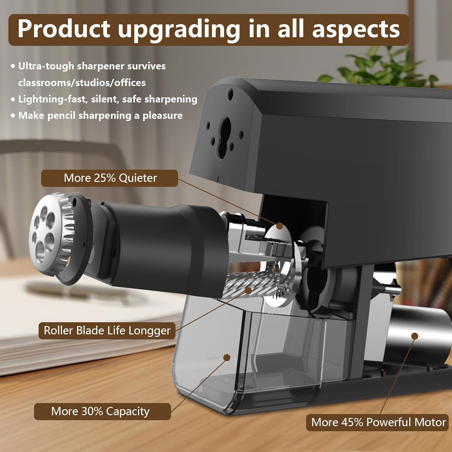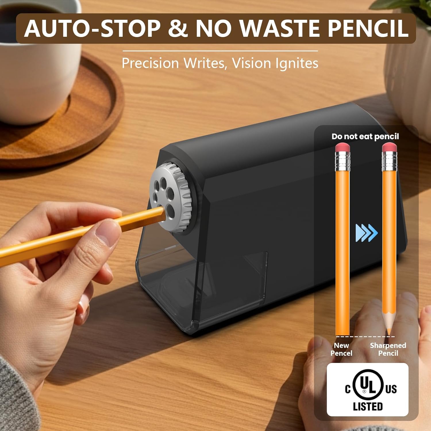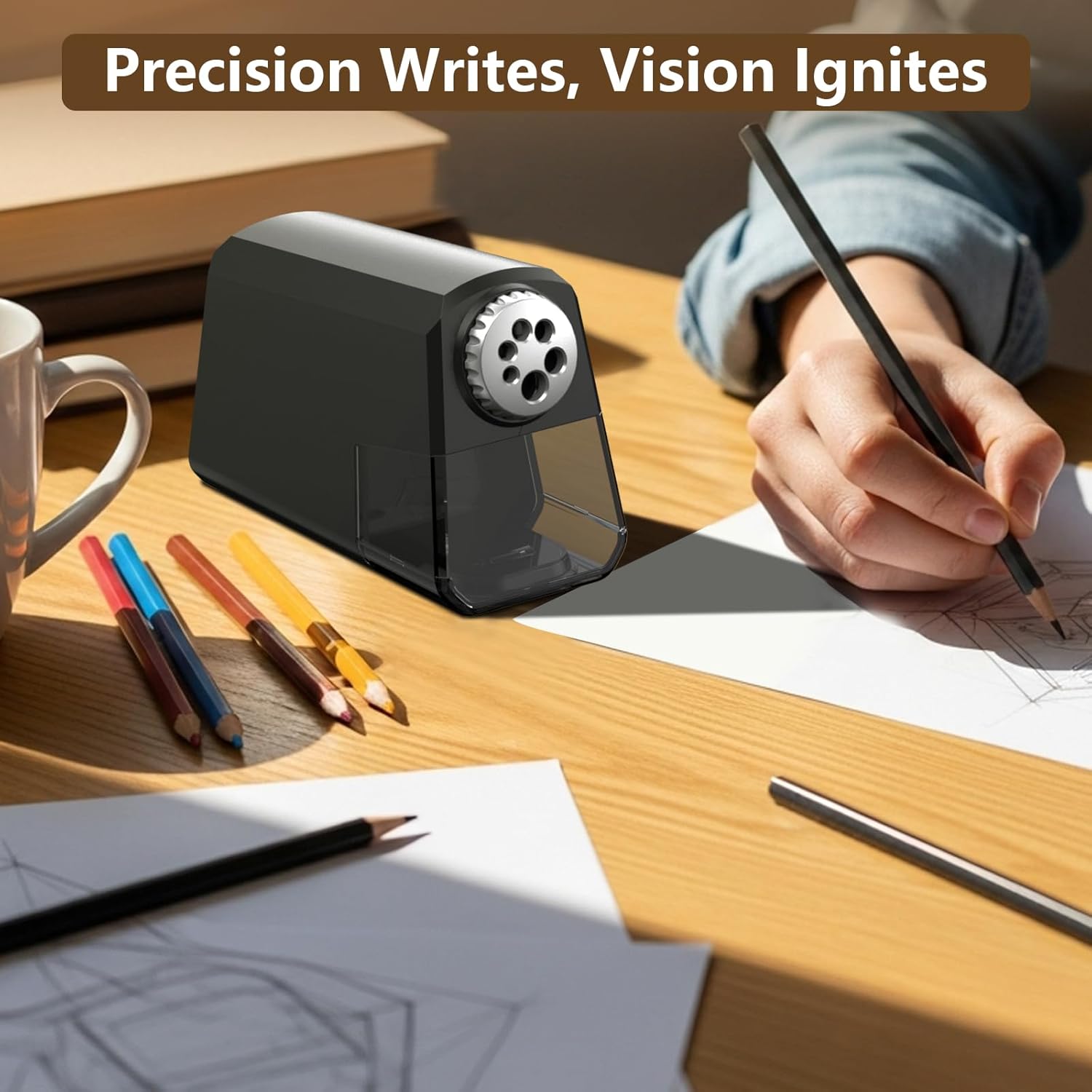 Heavy Duty Electric Pencil Sharpener – 6-Hole Design, Auto Start/Stop, Large Shavings Bin, Safe & Fast 4s Sharpening, Durable Zinc Alloy Blade – Great for School & Office Use