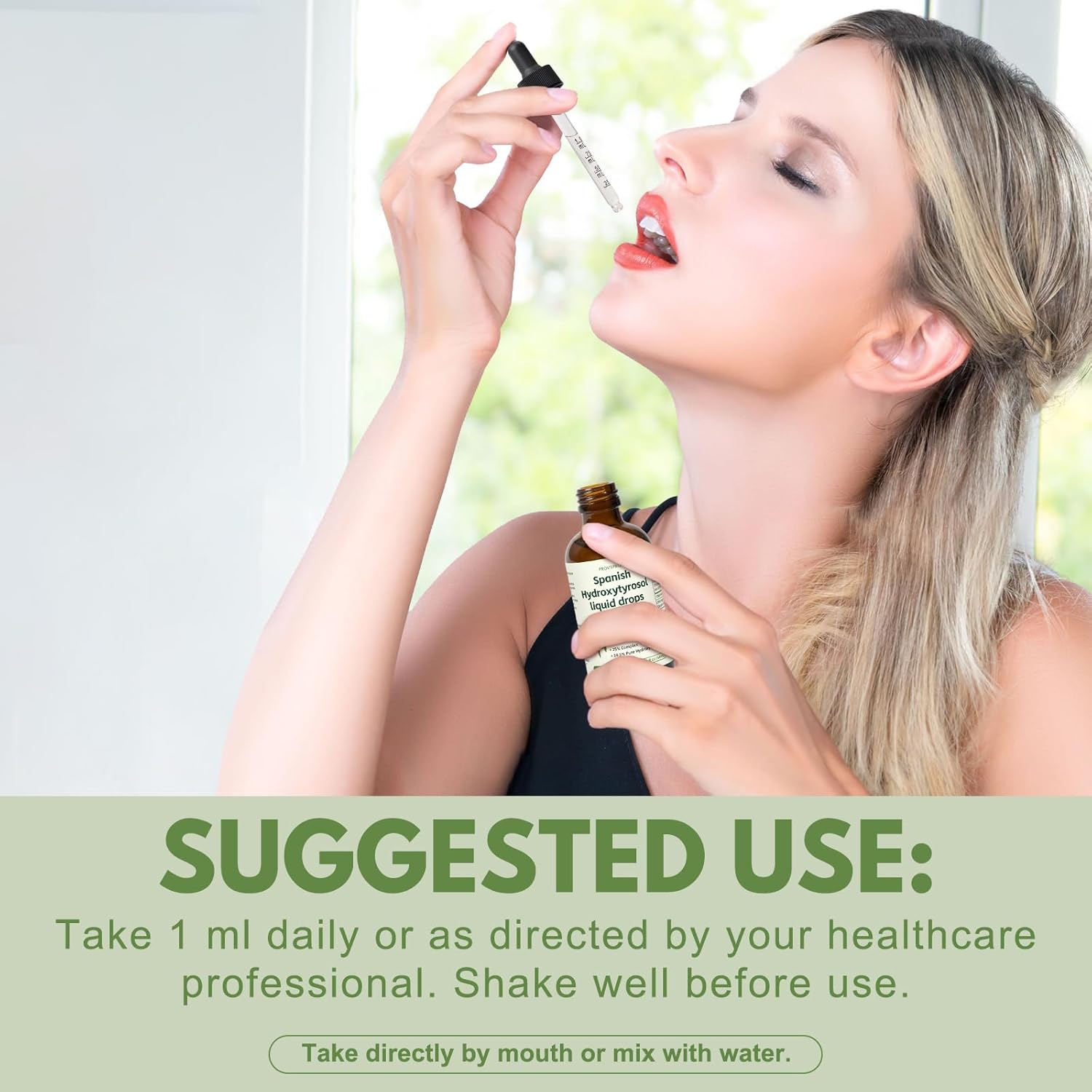 Hydroxytyrosol Liquid Drop, 100% Spanish Sourced Olive Fruit Extract, Super Antioxidant for Skin, Aging, Inflammation, Hydroxytyrosol Supplement, No Sugar, Alcohol Free, Olive Leaf Extract Alternative