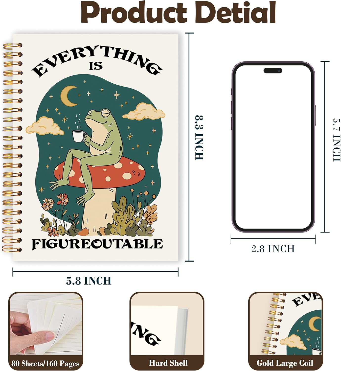 Be the first to review “IAFQWDS Everything is Figureoutable Inspirational Spiral Notebook Journal 5.5×8.3, Frog on Mushroom Motivational Notebooks for Note Taking, Inspirational Gifts for Women”