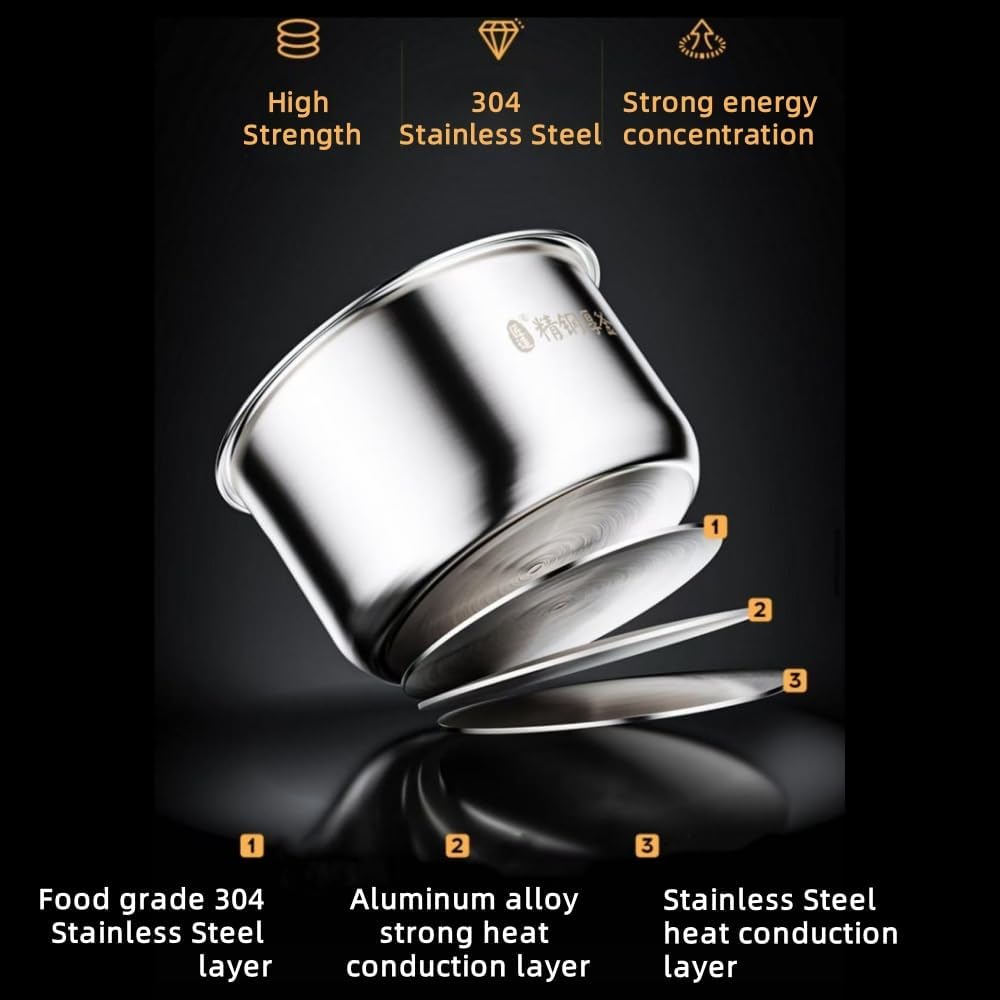 【Safe Food Grade Materials】 Heavy inner pot is made with high strength food grade 304 stainless steel, without coating, ensuring healthy and safe cooking.
