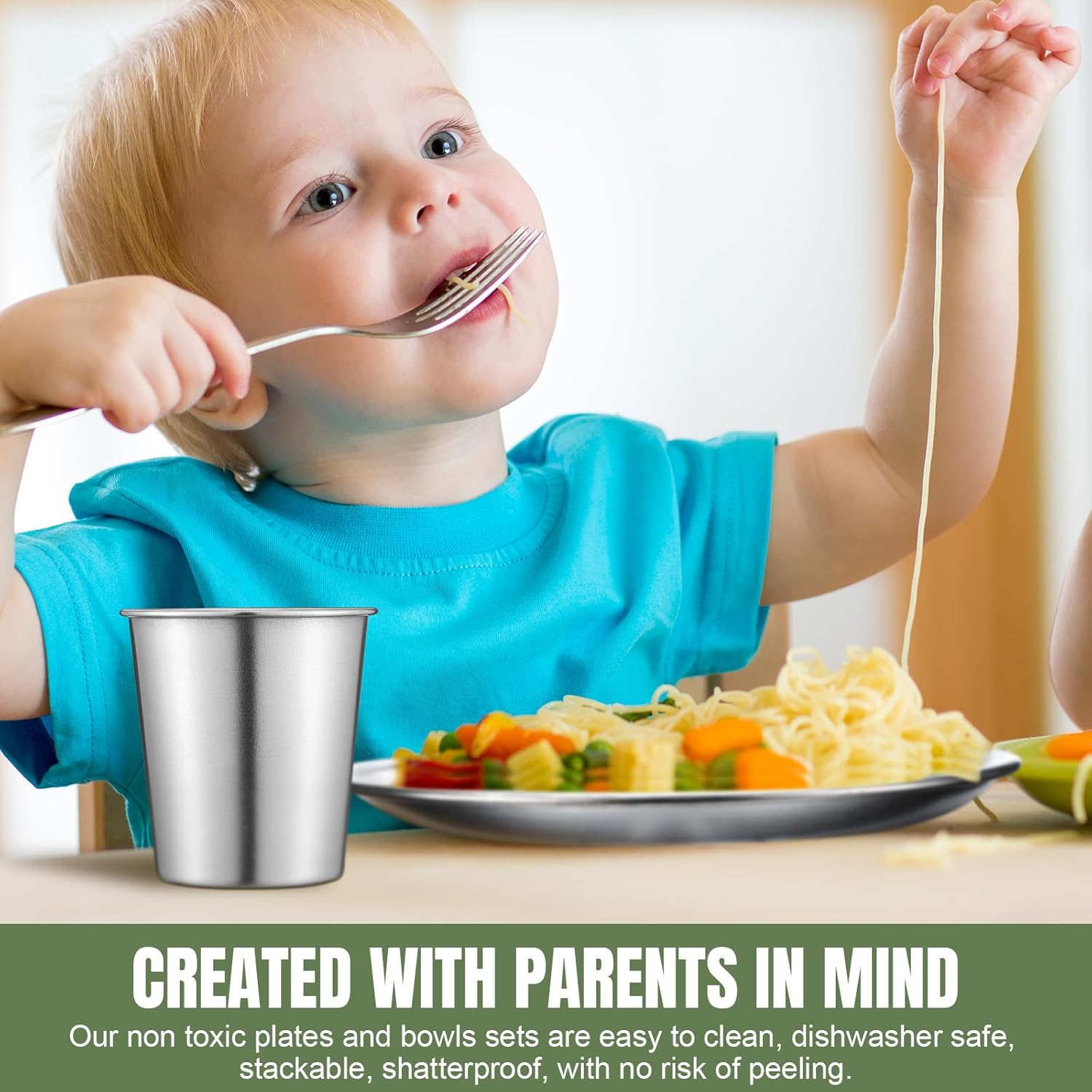 The stainless steel plates, bowls, and cups are dishwasher safe, simplifying your cleaning routine. Unlike more delicate materials, this stainless steel tableware stands up to frequent washing without fading or staining, allowing you more time to enjoy your meals and less time on chores.