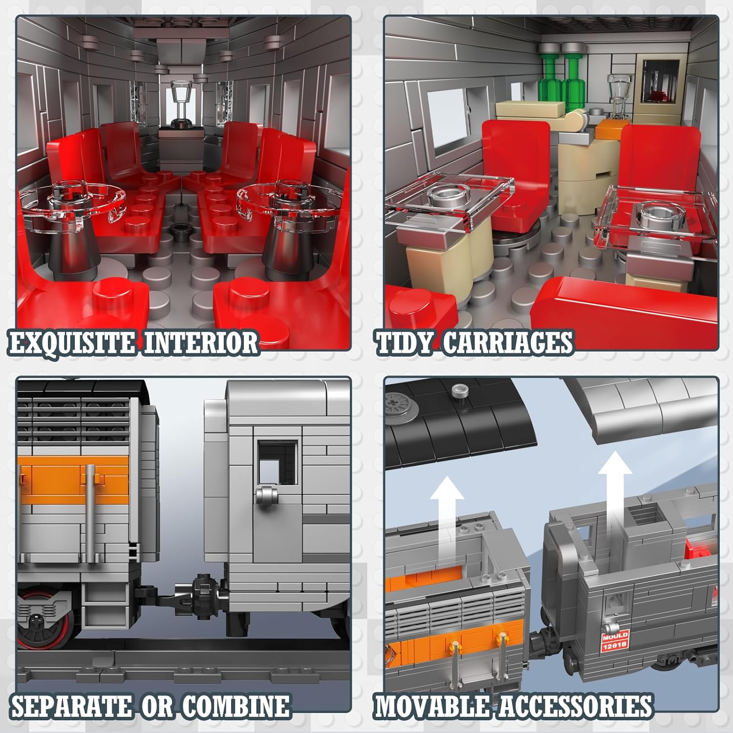 Ideal Train Model: Each building block has been finely processed to ensure the exquisite and realistic appearance of the assembled train model. This train model kit features innovative design with magnetic connections between carriages, facilitating easy attachment or detachment. The interior decoration of the carriages is intricately detailed, enhancing the overall texture and visual appeal of the model. The movable block groups add even more fun. Start building, unleash your creativity, and embark on a wonderful train journey!