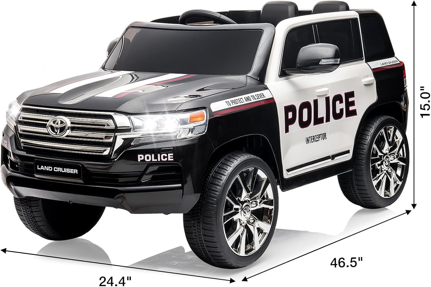 Stylish Black and White Design for All: The black and white color combination of our ride-on police car adds a stylish and sophisticated touch. Designed to be appealing to both boys and girls, this ride-on vehicle captures the attention of children and provides a visually pleasing experience.
